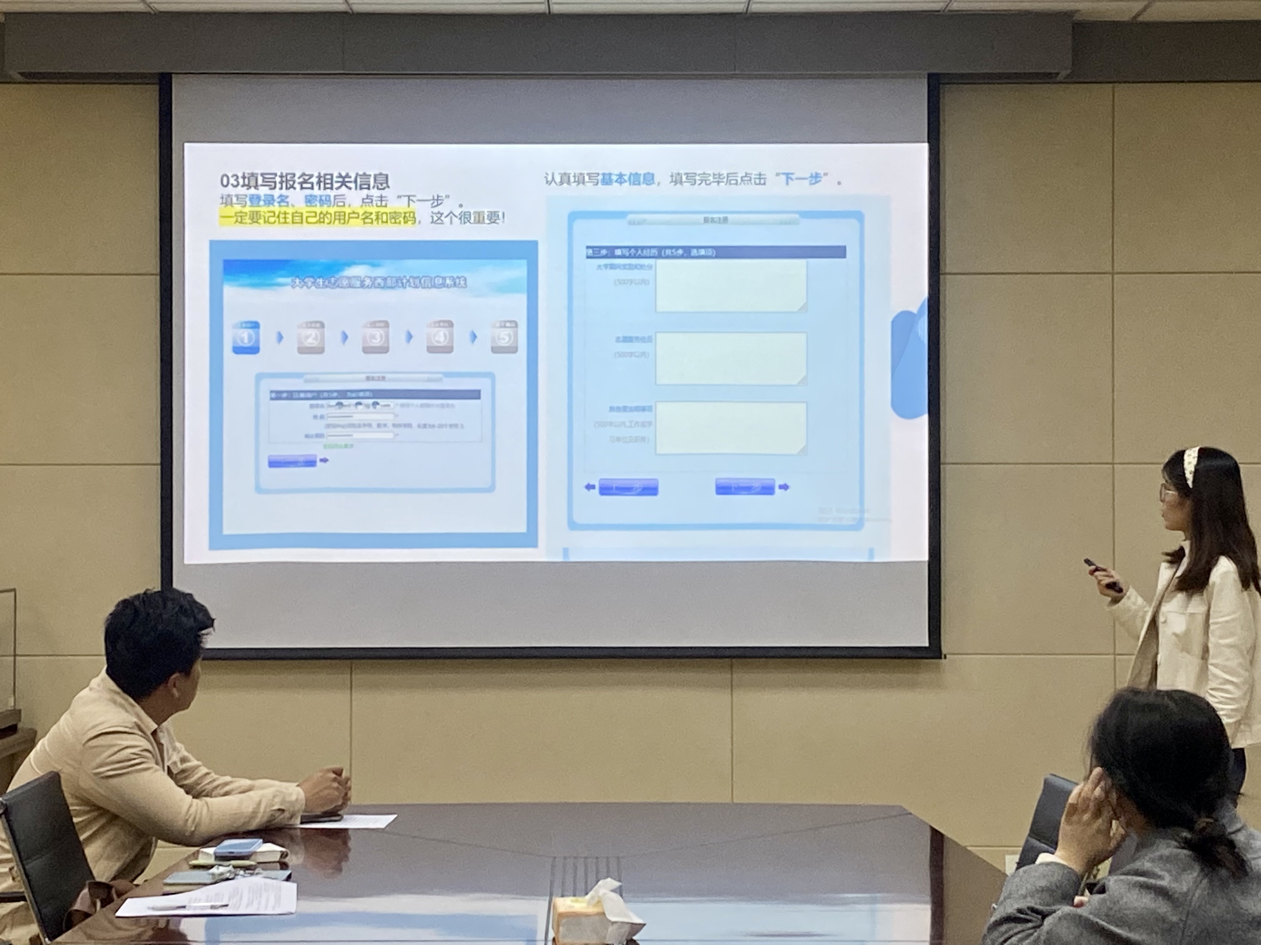 两位志愿者向参会同学讲述了自己参与西部计划的初心,介绍了自己的招募经历、岗位工作及工作成就,同时给参会同学分享了一路走来的感悟,鼓励大家为祖国西部贡献自己的一份青春力量,去体会志愿服务的意义,让自己在志愿服务中成长。