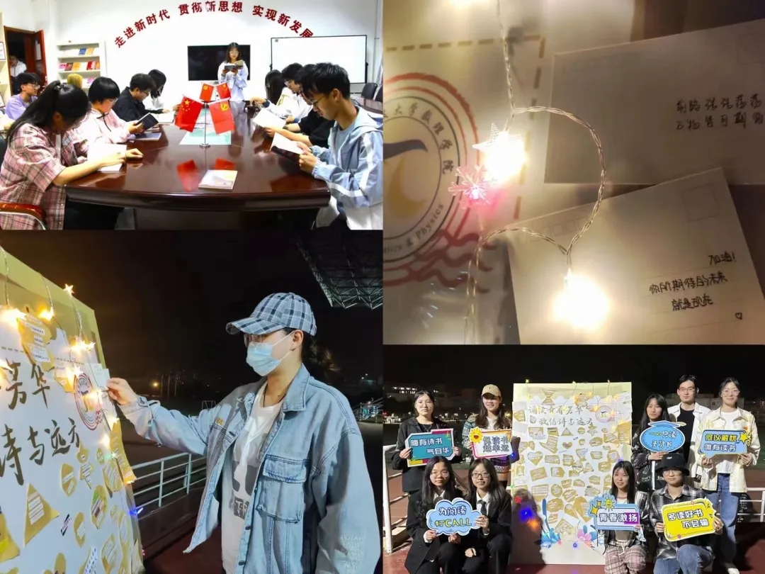 “给数理青年的信,不止十二封。”数理学院23届毕业生高雪娇说“在读了美学大师朱光潜先生的《给青年的十二封信》一书之后,我们也想通过书信这种原始却最深情的方式,将自己的心声讲给有需要的人。”结合毕业生主题教育,数理学院毕业生自发通过“诵读青春芳华,致信诗与远方”拼贴板致信寄语未来新生,以信传情,将对母校和恩师的深深眷恋传递;以信传道,将大学四年的经验启发传递;以信传意,将对即将入学新生的满满祝福传递,以实际行动支起传帮带,架起连心桥,将自己在学校的最后一段美好记录、留存。