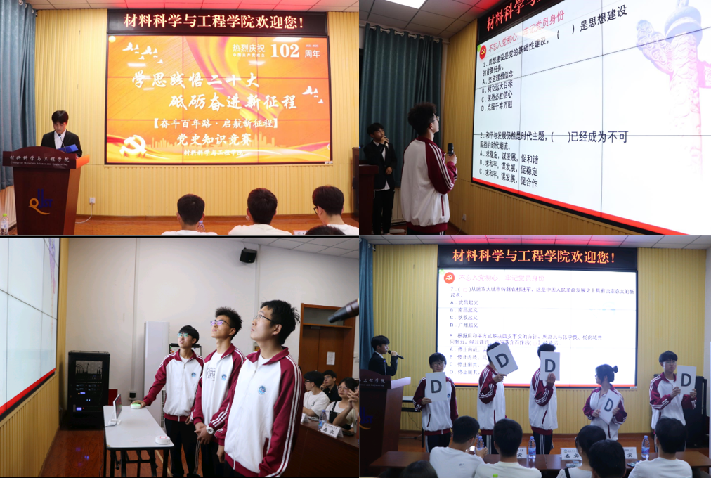 为帮助材料学子深刻了解党史知识,引导青年学生深刻学习宣传贯彻党的二十大精神,5月29日晚,材料学院在学院楼101举办“学思践悟二十大,砥砺奋进新征程”党史知识竞赛活动。