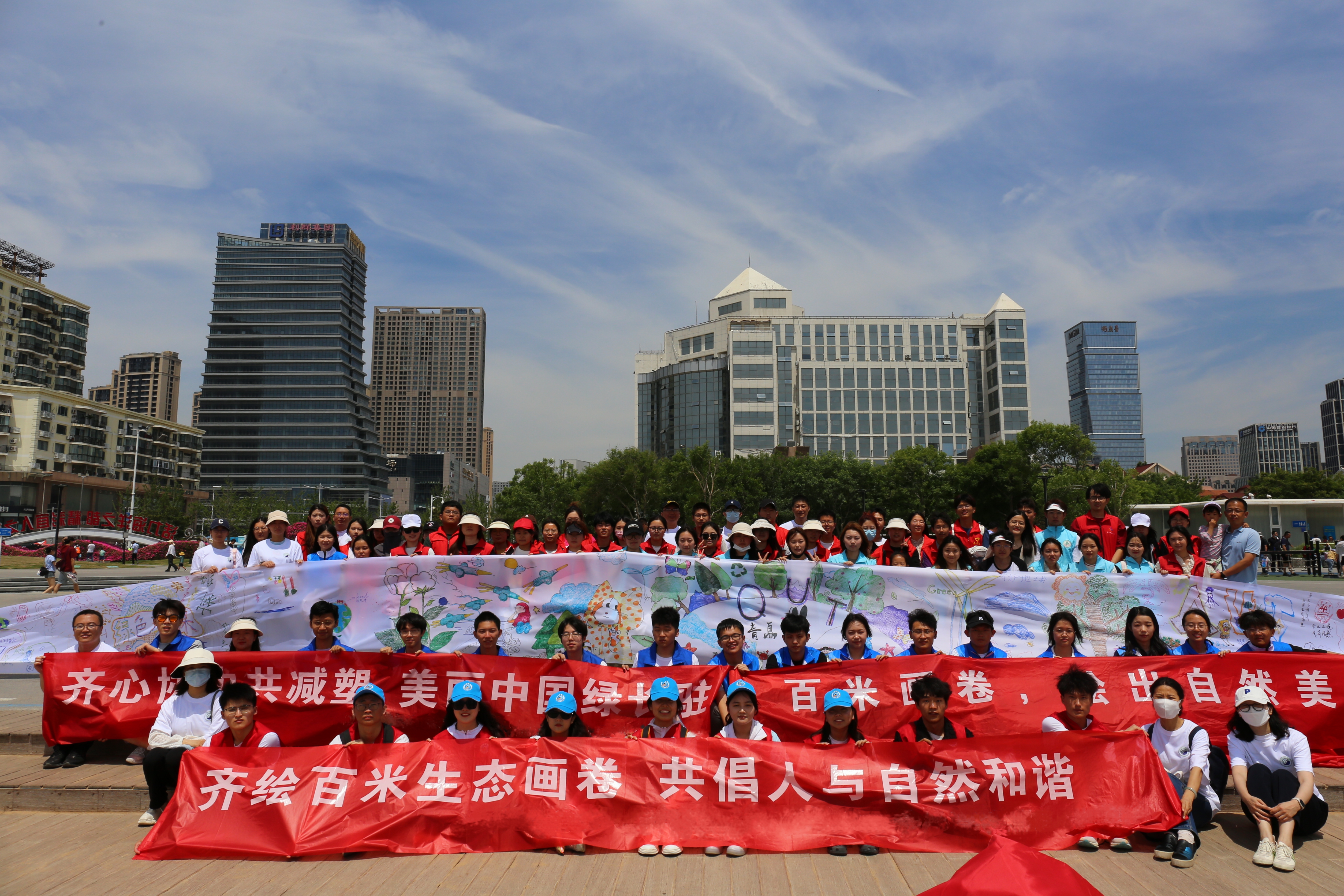 活动过程中,环境学院后天环保协会成员作为MILE米乐集团学生代表,与山东大学、中国海洋大学、中国石油大学(华东校区)、山东科技大学、青岛大学、青岛理工大学、青岛农业大学等同专业学生代表一起,共同在百米画布上留下浓墨重彩的生态环保印迹,结合艺术展示的形式,吸引公众热情加入,大力弘扬生态文化,鼓励和引导学生积极参与生态环境保护实践,意在推动全社会形成崇尚生态文明、践行绿色生活的生动局面。