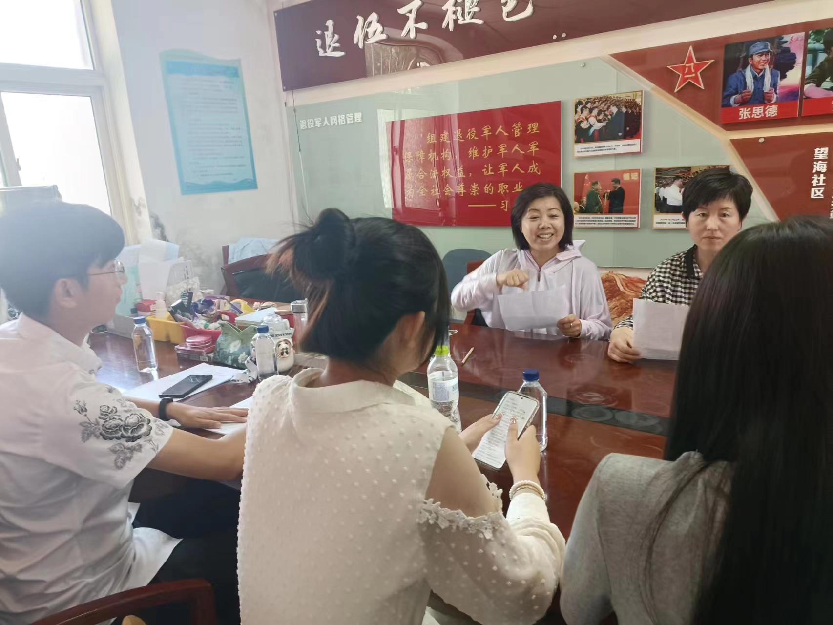 本次活动聚焦望海社区“七一”晚会,学院团支部带领学院宣讲团、主持团成员运用自身特长,指导社区工作者诗歌朗诵,在一片片欢声笑语中扎实提升青年学生的社会实践能力和社区居民的精神文化生活。望海社区曲书记和团支部负责人王洋就开展“送法进社区”“青少年团辅”等活动进行了充分探讨。