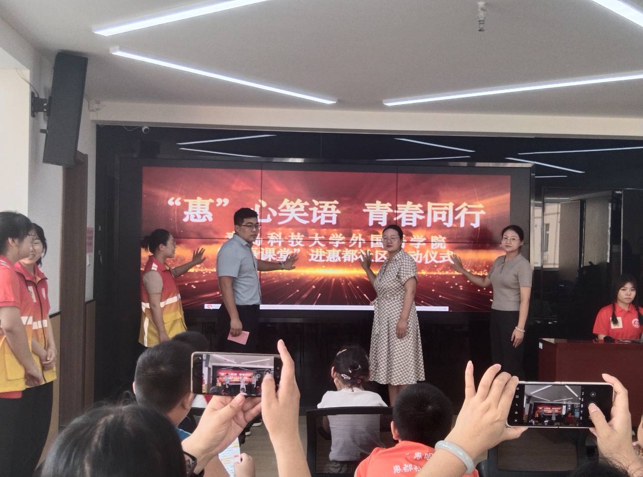 为切实提升共青团实践育人质量,将志愿服务融入基层社会治理,在服务人民群众中展现新时代青年价值。8月25日上午,外国语学院团委“心语课堂”进惠都社区进行了启动仪式,建立了大学生社区实践基地,开展了系列志愿服务活动,惠都社区书记刘显、惠都社区副书记王颖、学院团委书记刘妍君、团委老师马昆出席此次活动。