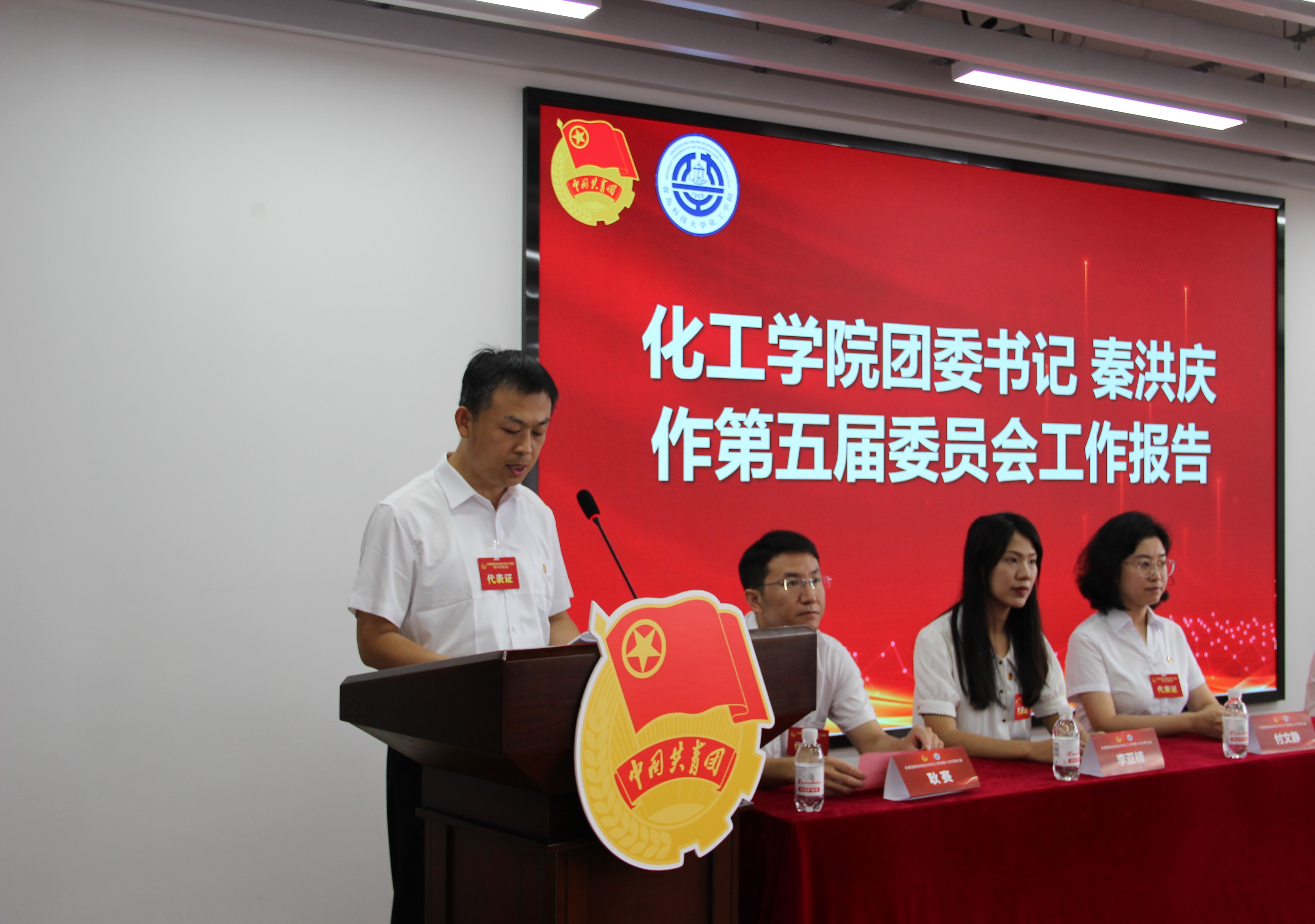 秦洪庆代表共青团MILE米乐集团化工学院第五届委员会作了题为《高擎旗帜跟党走,踔厉奋发新征程 努力开创化工学院共青团工作新篇章》的工作报告。