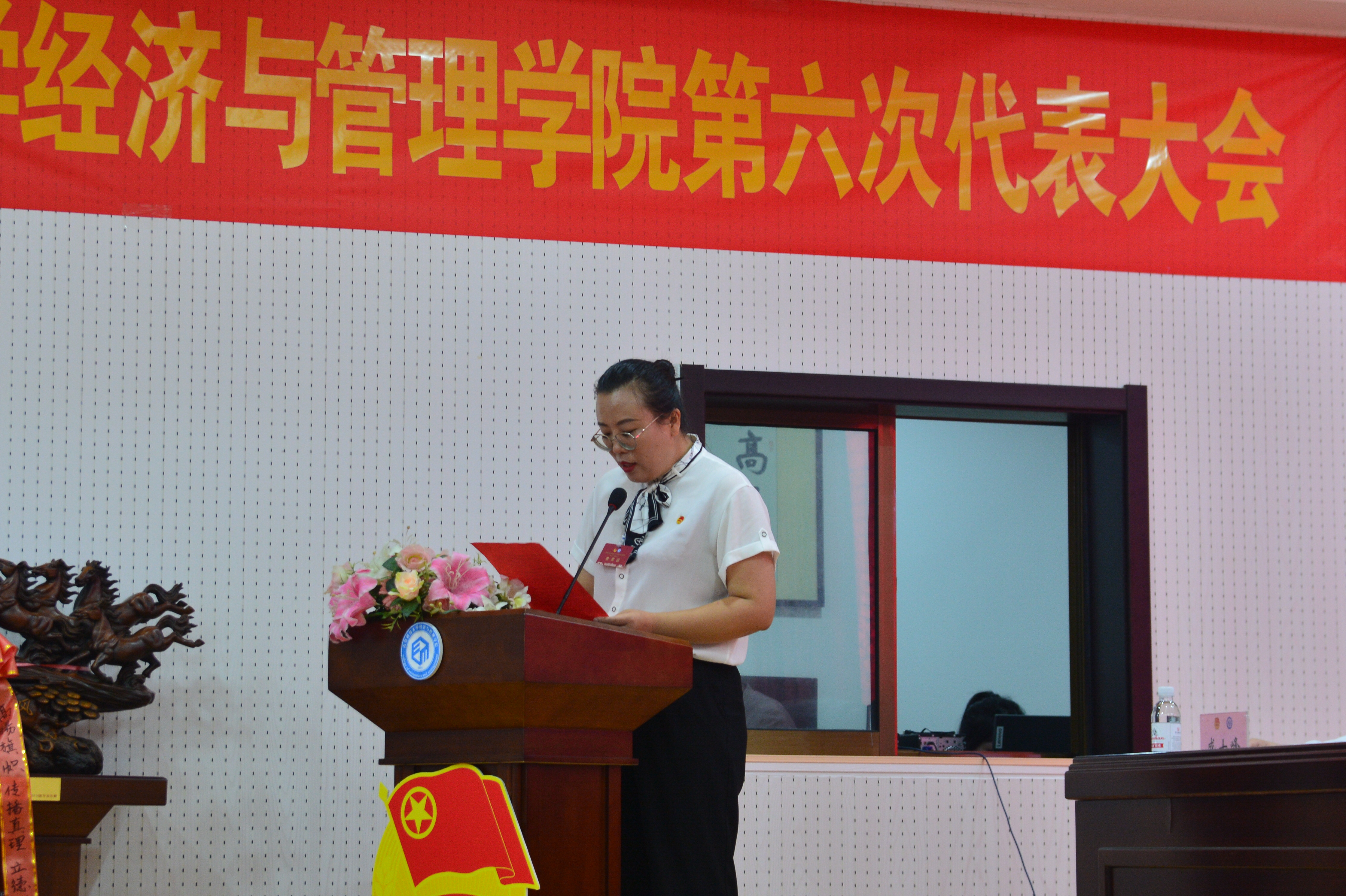 王聪代表共青团经济与管理学院第五届委员会作《强化政治引领 深化组织改革 提升攻坚能力,为建设“特色鲜明 走在前列”高水平大学贡献青春力量》工作报告。
