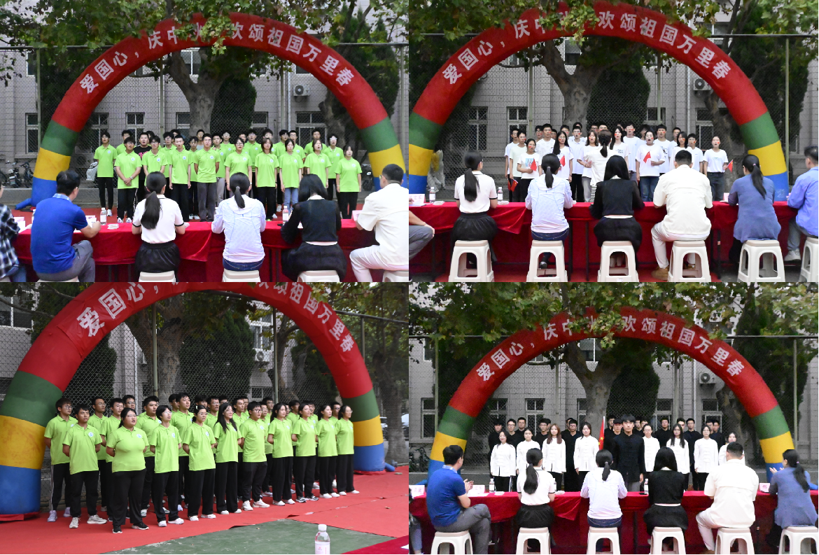 桂魄飞来光射处,团结歌声沁人心。比赛在橡胶232班带来的《我们都是追梦人》中拉开了序幕,10支参赛队伍依次上场,《我的中国心》《歌唱祖国》《我和我的祖国》《没有共产党就没有新中国》……一首首耳熟能详的经典曲目轮番上演,“橡尚高材生”心系祖国,声情并茂,明快高昂的经典旋律唱出了对党和祖国的热爱与赞颂。