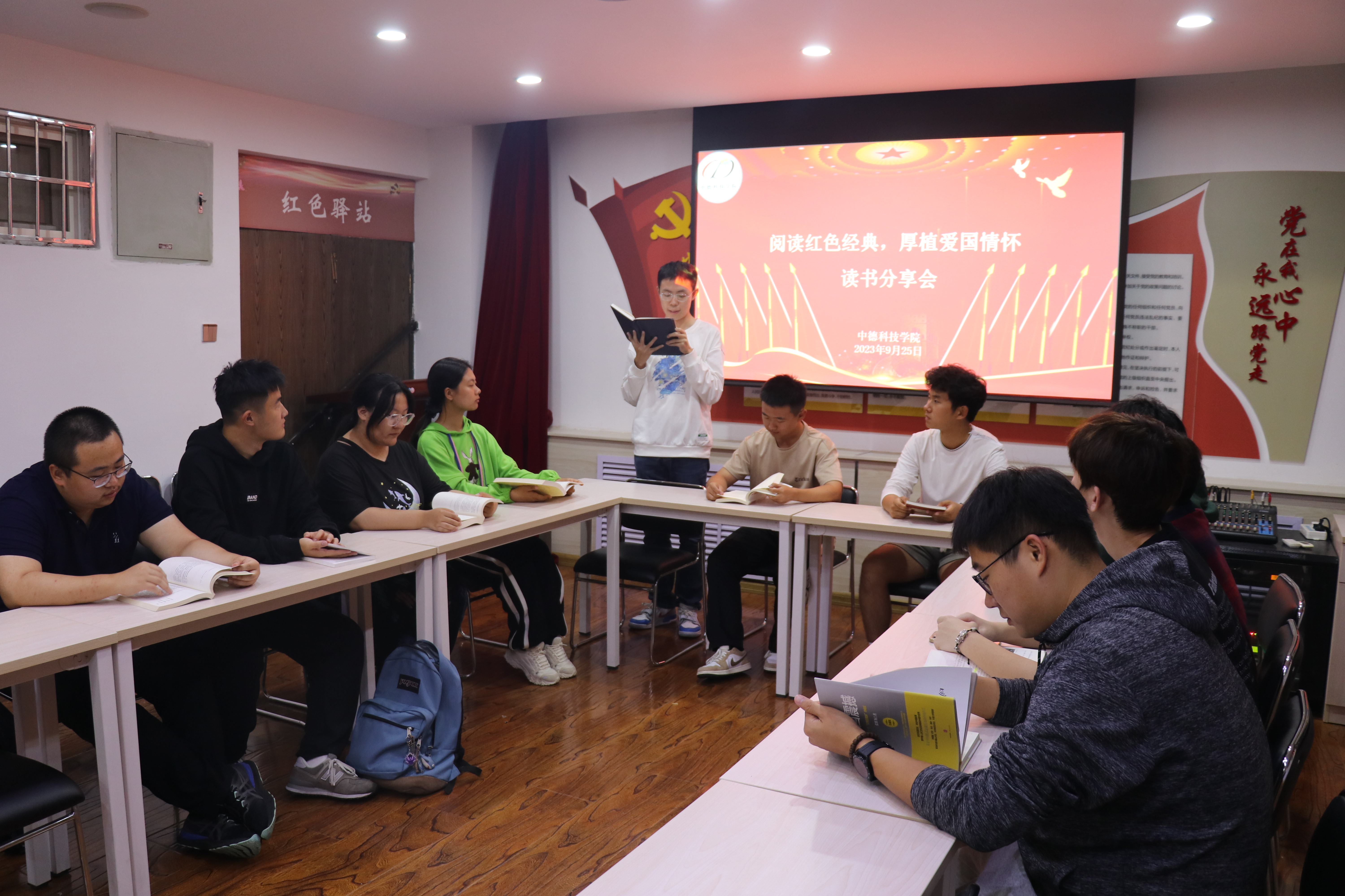 为引导青年学生领略革命精神与信仰力量,赓续红色血脉,在国庆节期间学院开展了“共读红色经典 凝聚奋进力量”红色书籍诵读活动。作为“个十百千万”读书接力计划中的重要内容,中德学子通过阅读《红星照耀中国》《红岩》等一系列经典红色著作,从中领会革命先辈的丰功伟绩和不怕牺牲的大无畏精神,汲取不断奋进、砥砺前行的精神力量。为迎接中华人民共和国成立74周年,学院在“润德图书角”设立红色经典阅读专区,进一步促进爱国、爱家、爱阅读浓厚氛围的形成。