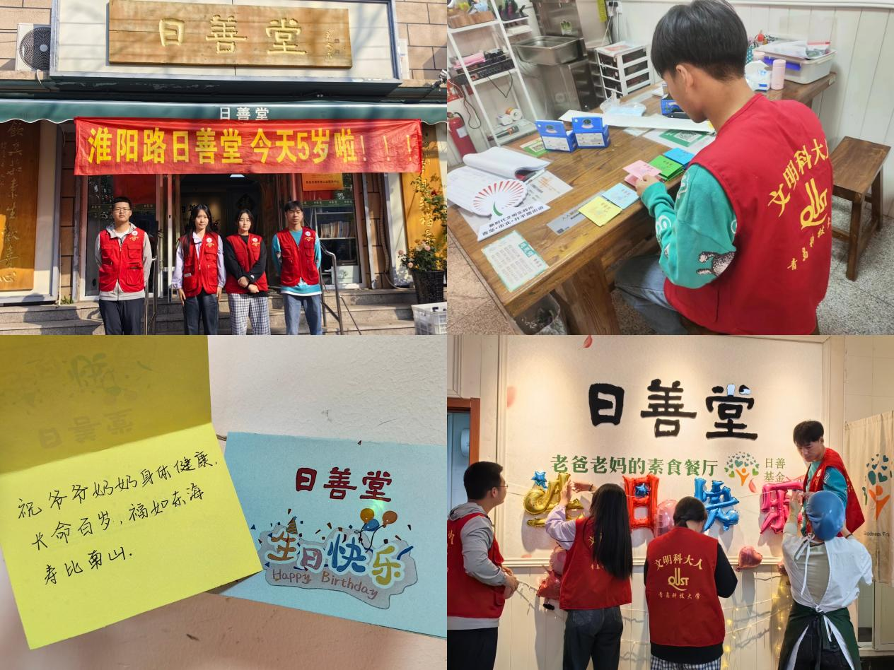 10月23日上午,化学院团委赴市北区公益机构日善堂参与“重阳敬老,爱在社区”行动。志愿者们重阳节当天上午来到日善堂,帮助店长布置现场并为老人们写下祝福语,之后为老人们提供义务服务,包括帮助老人们盛饭、分发食物、清理餐具等。在这个过程中,志愿者们还与老人们聊天交流,和他们一起分享重阳节的故事和习俗,让老人们感受到了年轻人的关爱和陪伴。