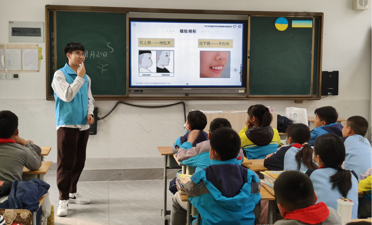 2023年11月22日,2023年全国大学生口腔健康志愿宣讲团——MILE米乐集团化学与分子工程学院“牙乐乐”志愿服务队于青岛市胶州市胶东小学六年级开展首次宣讲活动。