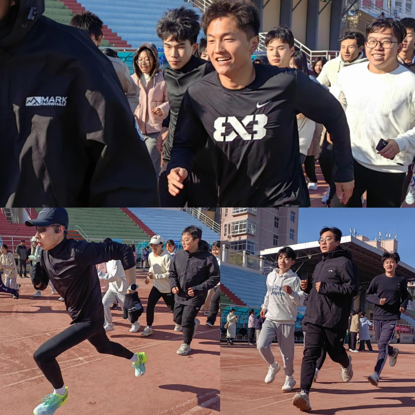 本次接力赛分为男子1200米和女子800米两个项目,优秀者将被推荐进入校赛。准备过程中,同学们情绪高昂,精力充沛,踏上跑道的那一刻满怀的热情冲开迎面而来的冷风。随着裁判员一声令下,比赛正式开始。运动员们奋力奔跑将一个个竞争者不断地甩在身后,体验着运动的乐趣与激情,即使是凛冽的寒风也挡不住同学们向前的奔跑的脚步。在观众区,同学们也在尽情为参赛者们加油呐喊。