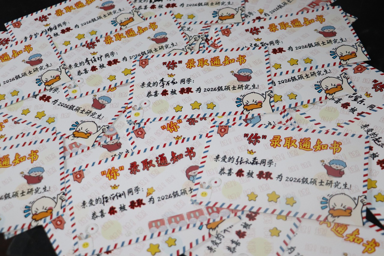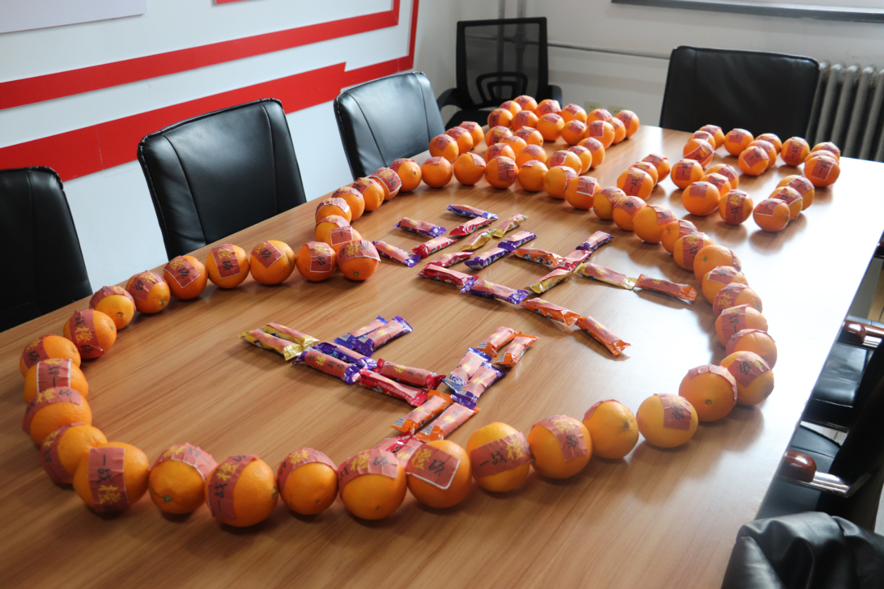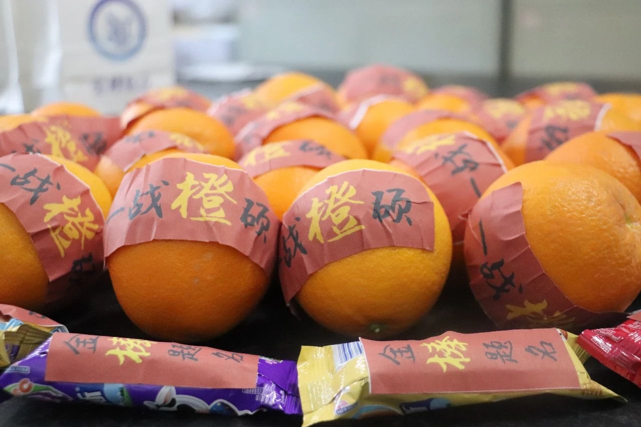 学院精心设计“爱心加油包”,以考研学子最期待的礼物“录取通知书”为出发点,用心设计“‘你’录取通知书”,‘你’谐音“拟”,讨好彩头,增添信心,并细心设计“男生版”“女生版”,大四年级辅导员巩金梦老师为每一位考研学子手写“录取”姓名,博得考研学生暖心欢喜。在每一颗橙子上,粘贴“一战‘橙’硕”红色纸贴,棒棒糖上也贴有“金‘棒’题名”字样。此外,学院也为考研学生定制了“大获全胜”防护口罩,调整考研学子紧张心态,祝福大家成功上岸!