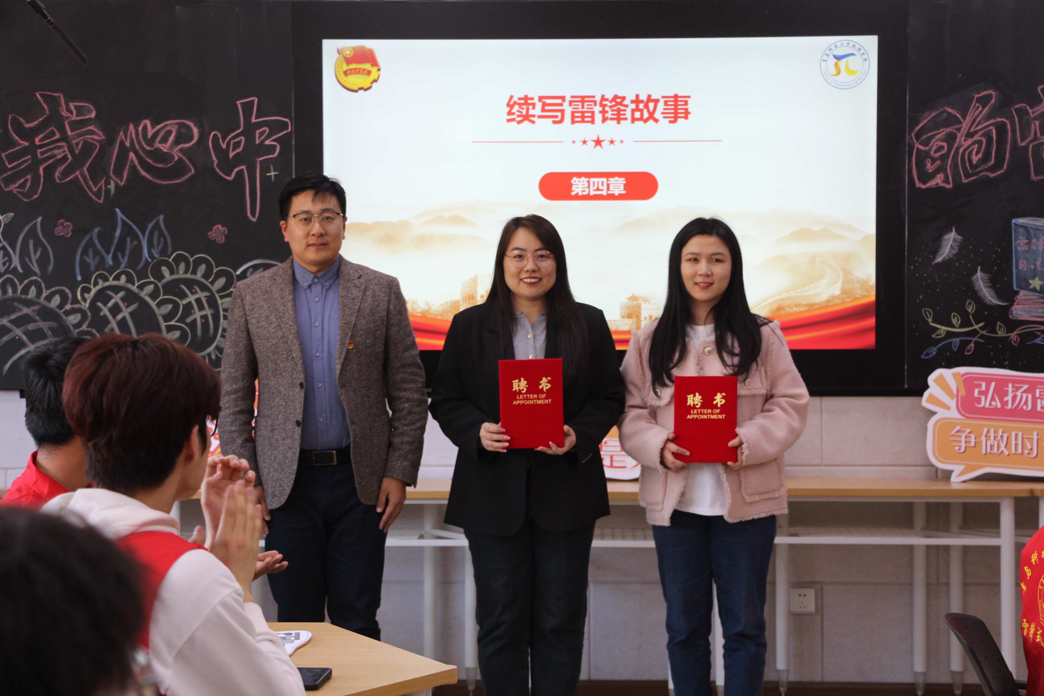 山东青年志愿者优秀工作者、经管学院辅导员付凯,山东省“百万大学生进社区”社会实践项目先进青年教师、机电学院辅导员穆青青受聘为“雷锋团支部”特聘顾问,并做现场指导培训。活动现场还聘任了团支部2024年主理人团队。