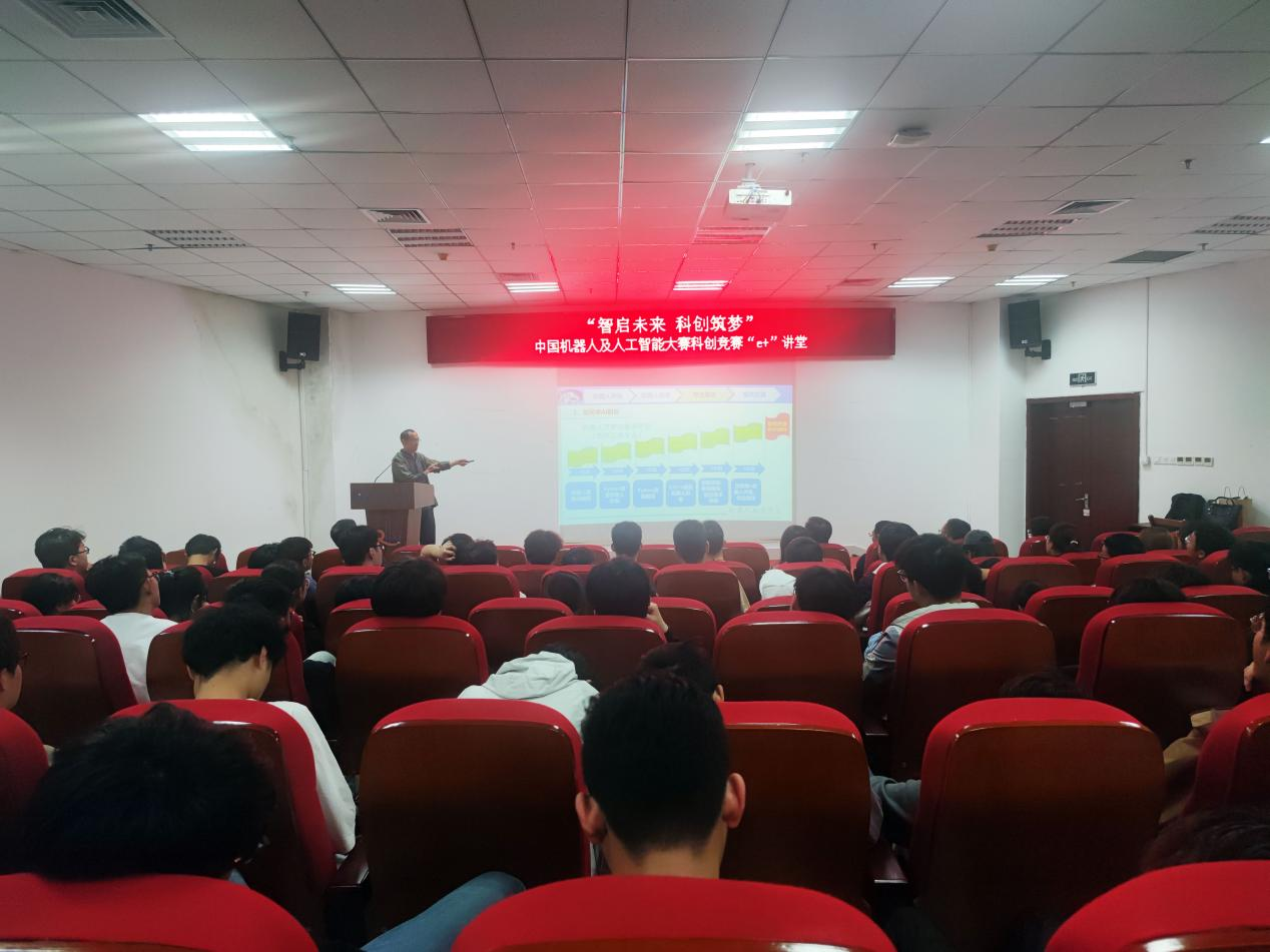 讲座中,马兴录老师向大家展示了机器人和人工智能技术在各领域的应用,带领大家深入探讨了“机器人离我们究竟有多远”。随后详细地为大家分析了中国机器人及人工智能大赛的赛项内容和要求,以及参赛策略与技巧。
