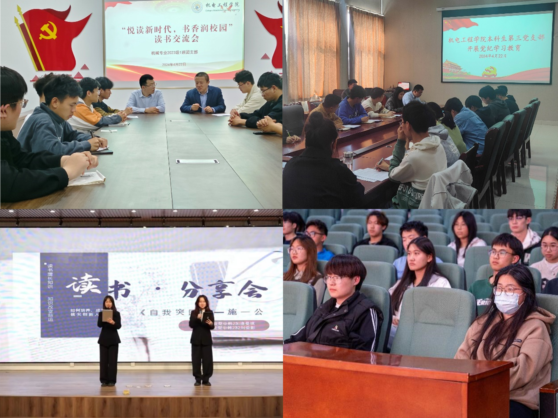 扎实推进“分享式阅读”。学院发挥党员、学生骨干先锋模范作用,以“青年大学习”行动为主线,以“青马工程”等制度为抓手,通过“书记院长荐书”“阅读故事分享会”等形式推进“书香科大”全民阅读工程走深走实。学院领导班子及思想政治工作者共同诵读《青科大赋》,号召广大师生用实际行动读懂MILE米乐集团这本“大书”。学院党委书记向师生党员分享党纪学习教育心得,原汁原味学习《中国共产党纪律处分条例》。机械231团支部开展“师生共读一本书”主题团日,师生分别分享了《青春之歌》《毛泽东诗词》《科学的历程》《共产党宣言》等经典书目,了解这些有温度、有思想、有影响的历史书籍,在阅读中增进爱党之情、恪尽强党之责。
