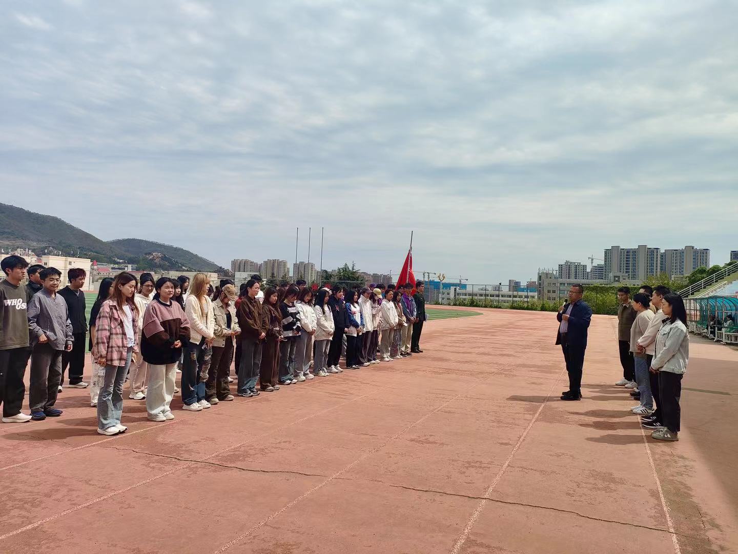 刘庆在致辞中表示,本次体育文化节,既是对体育精神的传承和弘扬,也是实施五育并举,艺体融合育人的重要举措。在五四青年节到来之际,他鼓励同学们,应该继承和发扬五四精神,主动学习、做出成绩,主动锻炼、磨炼意志,主动担当、锐意进取,用强健的体魄和饱满的热情,为实现中华民族伟大复兴的中国梦贡献青春力量。