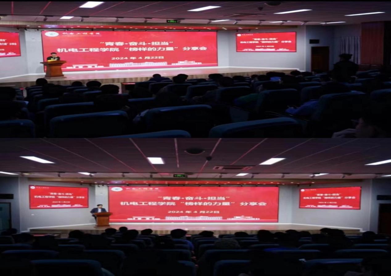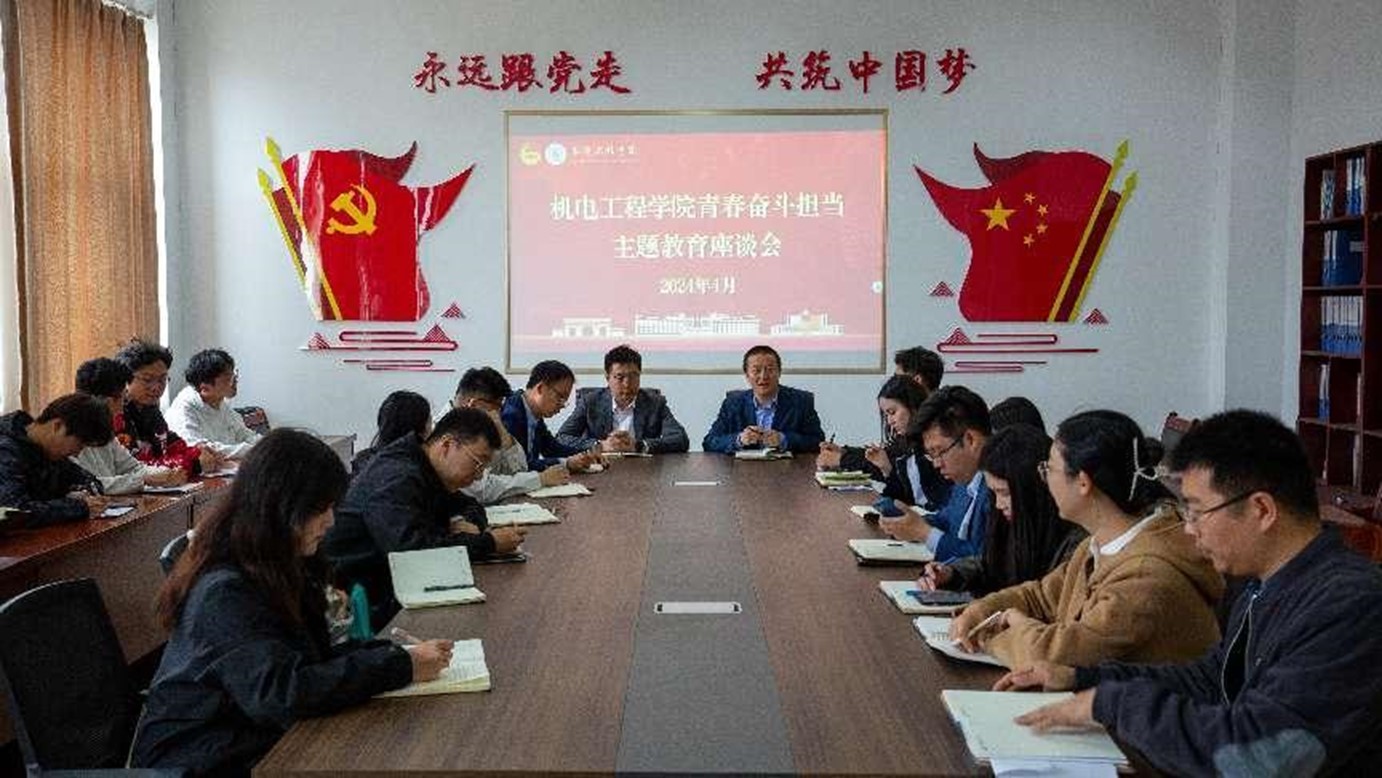 赓续五四薪火 共赴时代征程。4月30日上午,学院在机电楼529会议室组织召开五四“青春·奋斗·担当”主题教育座谈会,会上学校团委副书记李浩以在机电工程学院做辅导员老师的工作经历,分享了他与机电学院的故事。李浩书记表示,学院为青年学生提供了锻炼和磨练的机会,青年学生要坚定理想信念,培育高尚品格,提高工作站位,去奋斗去担当,敢想敢干,踏踏实实争做新时代新青年。会后,领导老师们与青年学生代表齐唱共青团团歌,共同回忆中国共产主义青年团的光辉历史。