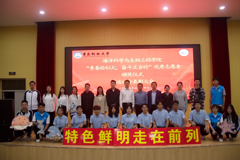 为积极培育和践行社会主义核心价值观,大力弘扬“奉献、友爱、互助、进步”的志愿者精神,表彰在过去的一年中在志愿服务和社会实践中表现积极的青年志愿者;同时,为表彰海院学子在校运动会中的突出表现,鼓励海院学子弘扬体育精神,勇担时代大任,争做有为青年。5月14日,海洋学院团委于尚舜报告厅举办“青春恰似火,奋斗正当时”优秀志愿者颁奖仪式暨运动会表彰大会,海洋学院党委副书记兼副院长刘浩、扬子江药业集团青岛地区负责人刘颖、海洋学院学工办主任兼团委书记秦洪庆、团委老师吕珊珊、车玉章、郭颖和学生代表参加活动,大会在庄严肃穆的国歌声中拉开序幕。