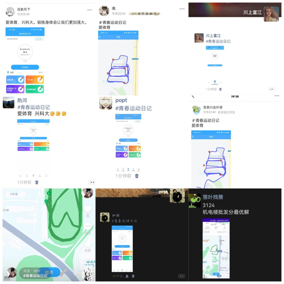 同学们打卡形式丰富多彩:球类、俯卧撑、仰卧起坐、跑步、健身等。此外,青年学生在社交软件发布视频照片,针对现阶段体育热门话题进行讨论分享,掀起青春运动的热潮。