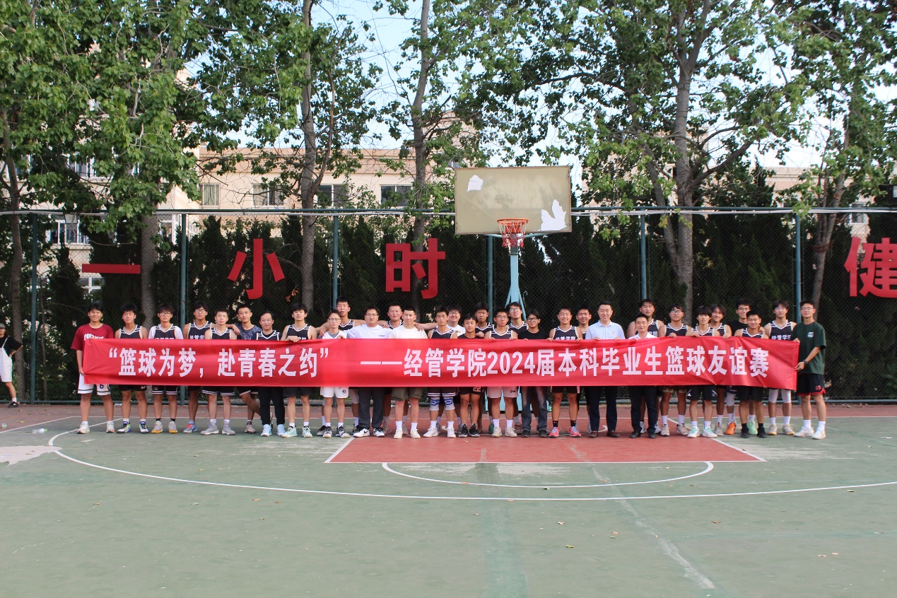 比赛在热烈的掌声和欢呼声中拉开帷幕。场上,球员们身着统一的球衣,精神抖擞,斗志昂扬。他们或转身突破,或远投三分,每一次精彩的进攻和防守都引来观众们的阵阵喝彩。场下,观众们热血沸腾,他们或高声呐喊,或挥舞着手中的旗帜,为支持的队伍加油助威。本次比赛共有2支队伍参赛,他们分别来自经管学院的大四毕业各个年级和其他非毕业年级。在比赛中,球员们始终秉持着“友谊第一,比赛第二”的原则,他们在场上是对手,场下是朋友。他们在比赛中展现出的团结协作、拼搏进取的精神风貌,不仅赢得了观众们的阵阵掌声,也为自己即将离校的青春岁月留下了宝贵的回忆。此外,本次比赛还得到了学院领导、老师以及广大校友的大力支持和关注。他们纷纷来到现场观赛,为球员们加油助威,共同见证了这一场青春的盛宴。