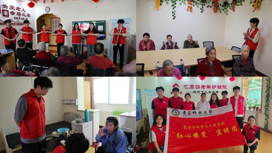 “你们现在的日子真是好日子,要好好珍惜啊”,在市北区汇康源养老院,团队成员与老人们一起演唱了红色经典曲目《团结就是力量》,陪老人们一起做了“红星闪闪手指操”。不同于之前的宣讲,这一次,团队成员是倾听者,倾听着老人们讲述独属于他们年代的革命故事。这一次,井冈山精神真正跨越时空,系住了老人和青年学子的心。