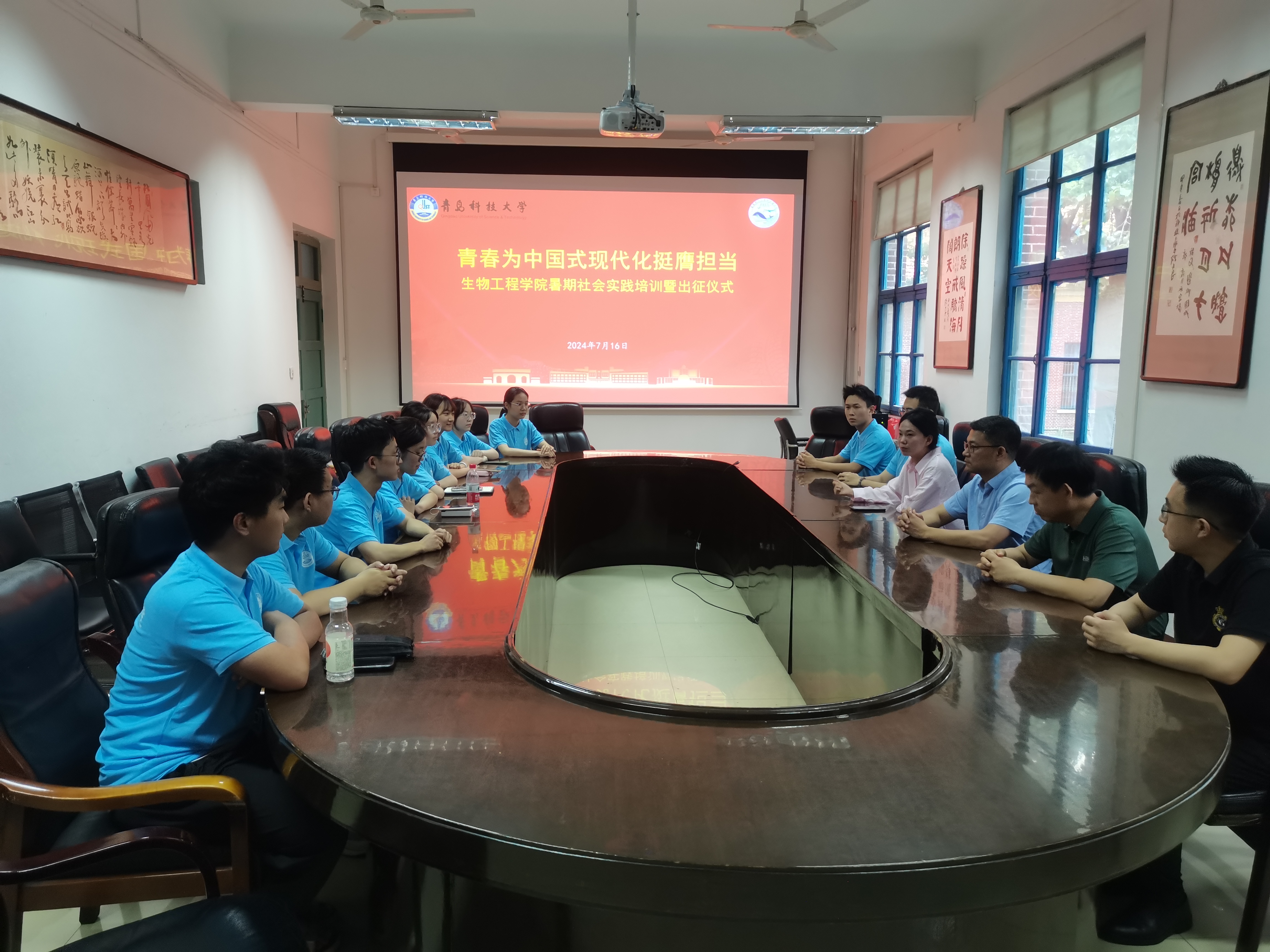 为深入学习贯彻习近平新时代中国特色社会主义思想,引领广大青年学生锤炼创新精神,培养团队协作能力,厚植社会责任感,坚定信念听党话、跟党走,7月16日下午,生物工程学院团委举行2024年暑期“三下乡”社会实践活动出征仪式,学院党委副书记兼副院长刘浩、团委书记兼学工办主任秦洪庆、团干部车玉章、郭颖和实践队伍学生代表参加活动。