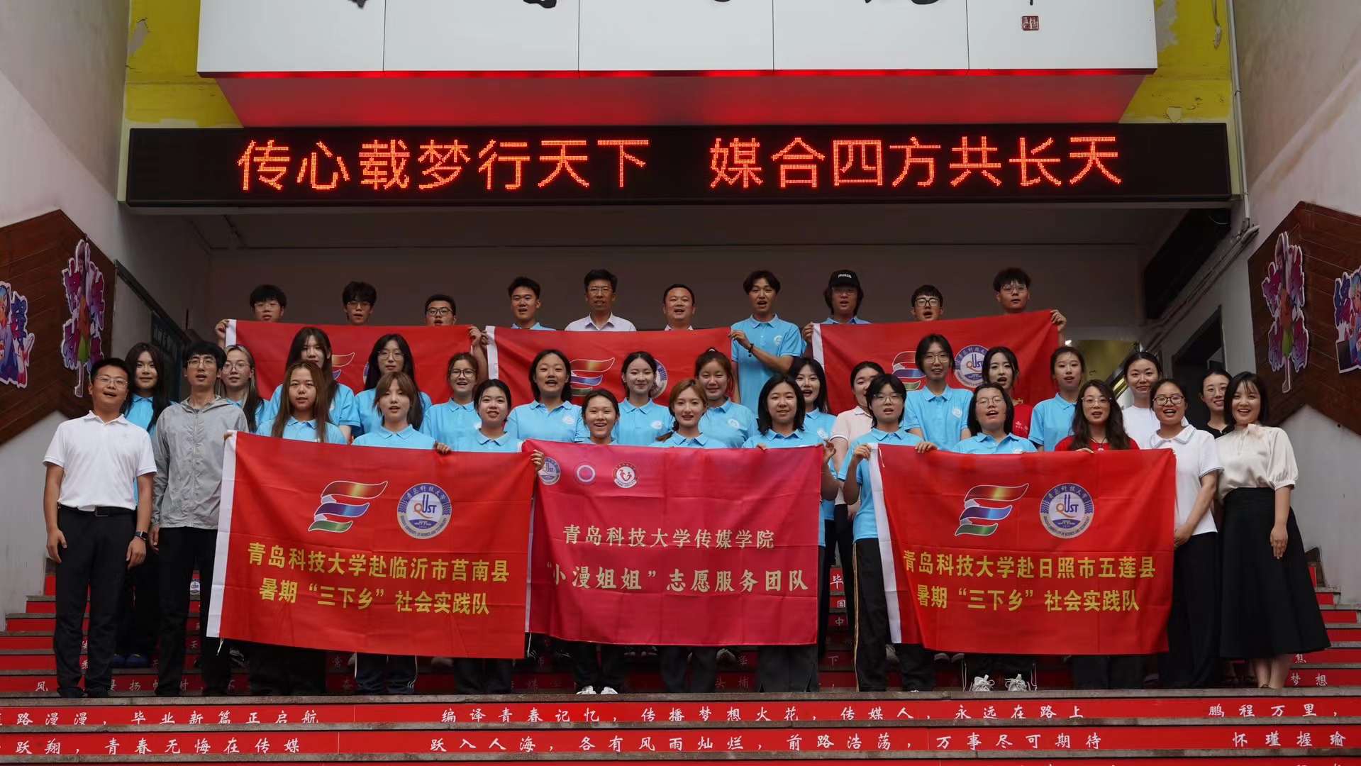 7月17日下午,传媒学院团委组织2024年暑期社会实践出征仪式,各实践团队正式出征,持续在学校美育领域深耕15年的“小漫姐姐”志愿服务团队,今年再次踏上新程。据悉,本次暑期社会实践活动以“青春为中国式现代化挺膺担当”为主题,学院团委共组建团队46支,其中团中央团队1支、校级重点团队3支,实践地覆盖新疆乌鲁木齐、陕西延安、贵州六盘水、山东莒南等地,累计参与青年597人。各支社会实践团队将围绕爱国主义教育实践、中华文化传承、乡村振兴促进、美育实践等主题展开。