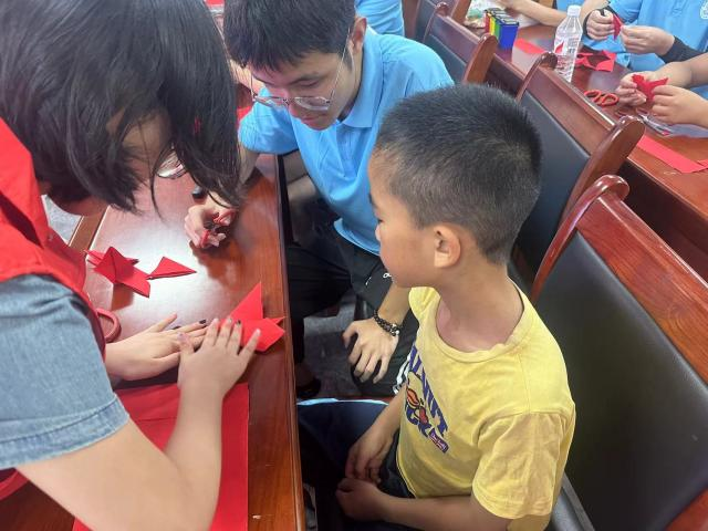 剪纸手艺自2006年起被我国列为第一批非物质文化遗产,为增强孩子们对中华民族优秀传统文化的认知,“星火青春,自强不息”志愿服务团队结合实际,为到场小朋友讲解了关于剪纸的历史渊源、发展历程、制作步骤等相关知识,让孩子们在不同种类剪纸中感受各种地方气息。