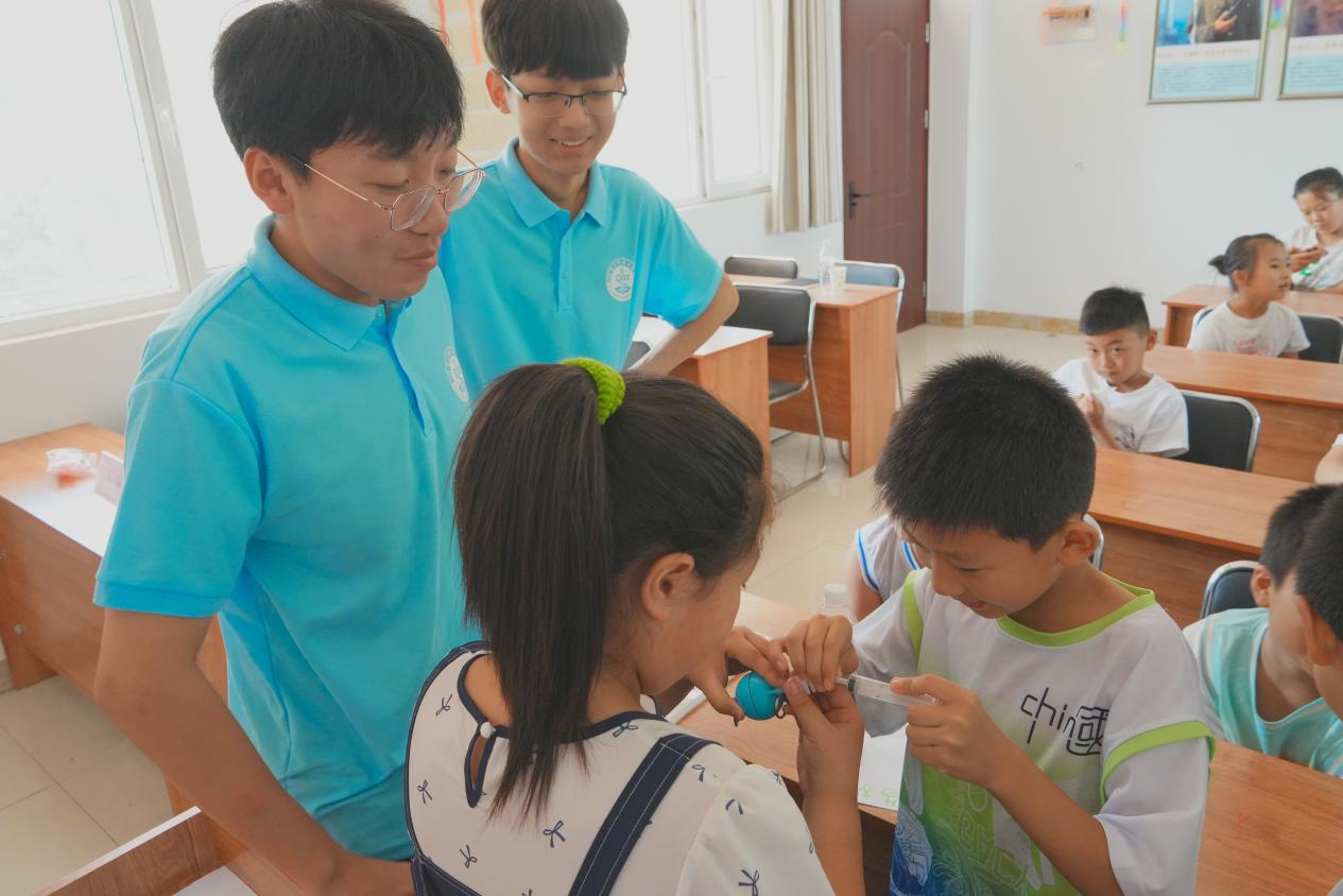 “喜阳阳”志愿服务队是一支由MILE米乐集团自动化学院学子组成的队伍,他们结合自身专业打造了独特创新的实验课堂,让科创课成为了此次支教活动的亮点之一。为了给孩子们带来生动有趣的物理小实验,他们一早准备好实验道具,借助马德堡半球实验,让孩子们真正感受到大气压强的神奇力量。同时为提高孩子们的参与感与动手能力,志愿者带领他们亲自动手操作,让孩子们在实践中感受物理实验的魅力。这堂科创课不仅激发了孩子们的科学兴趣,还让他们相信自己未来定能够用自己的智慧点亮科学的星空。