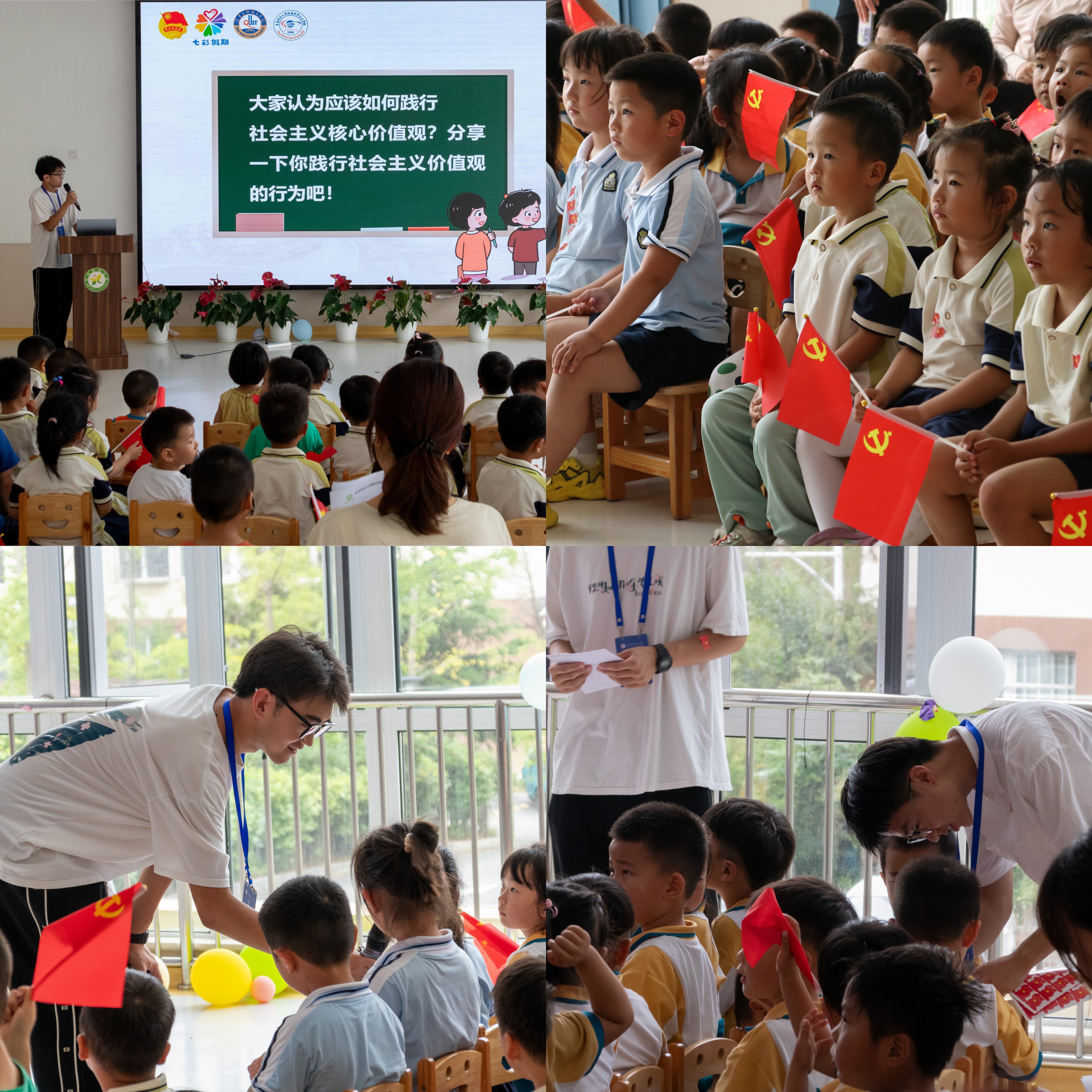 志愿者围绕社会主义核心价值观,详细阐释其具体内涵,并通过趣味互动问答,引导小朋友们深入思考如何在日常生活中践行社会主义核心价值观。小朋友们思维活跃、积极发言,充分展现出新时代少年的良好精神风貌。