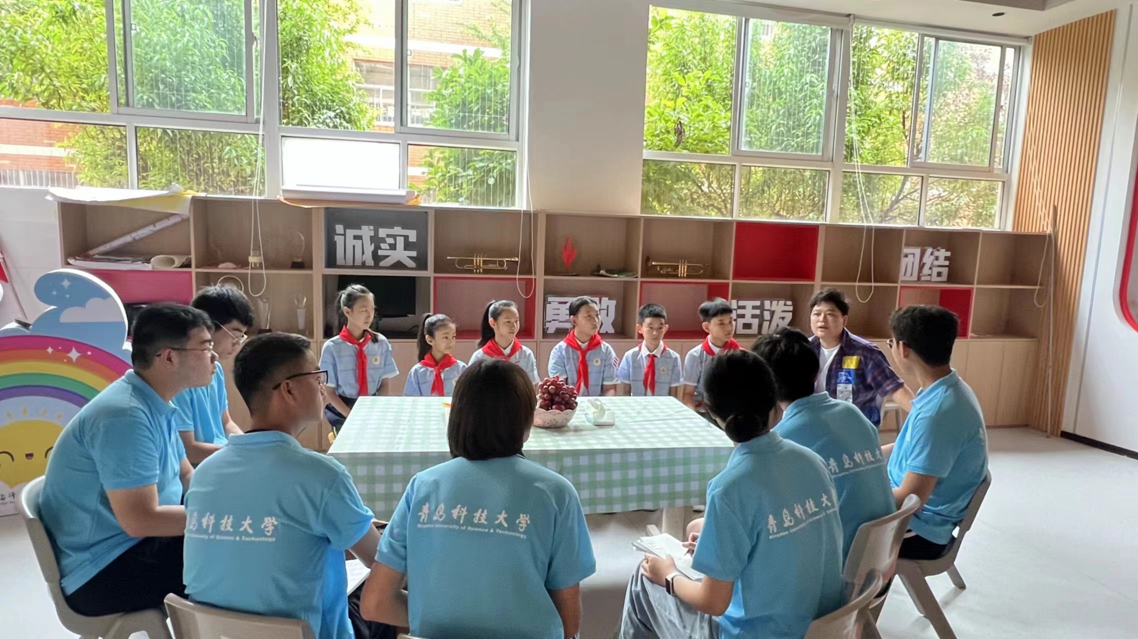 图为团队成员与“红领巾讲解员”开展座谈交流
