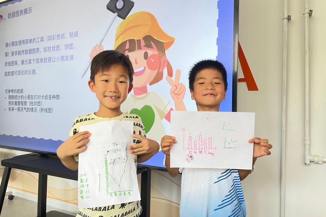互动实践环节更是精彩纷呈。在志愿者们的引领下,小朋友们踊跃参与到数据收集整理的过程当中。志愿者们让小朋友们统计自己喜欢的折纸颜色的数量,并将其制作成直观的图表。小朋友们积极投入,认真地进行记录和整理数据。有的小朋友选择用柱状图来展示不同颜色折纸的受欢迎程度,有的则用饼图来呈现每种颜色所占的比例。通过亲手制作图表,小朋友们不但体验到了数据可视化的乐趣,还更深刻地领会了数据的意义和价值。