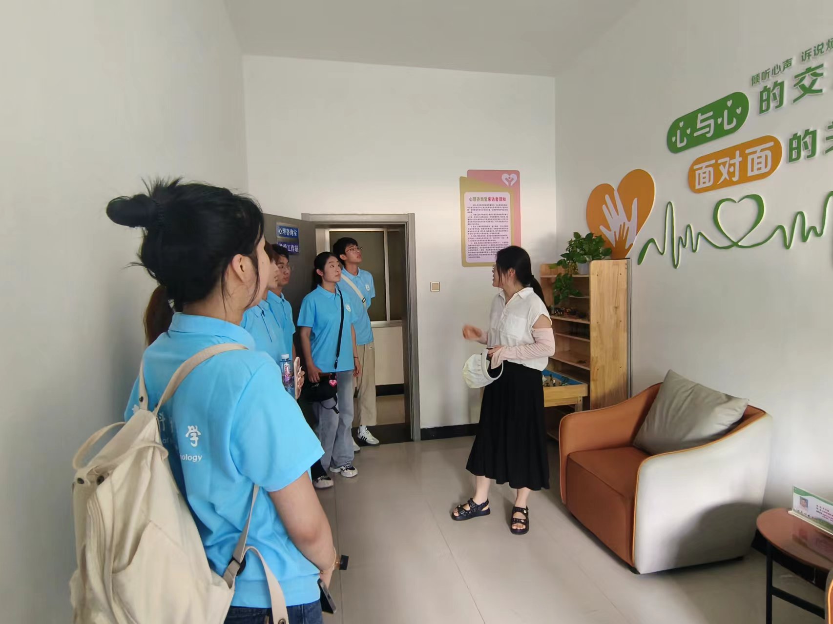 作为基层法治机构,司法所设有个体心理咨询室、宣泄室、沙盘室等多功能室,为居民构筑了一个多元化、全方位的关怀空间,通过提供心理支持和情感关怀,让居民缓解心理压力,调整情绪状态,有效减少因心理问题引发的社会矛盾和冲突。在讲解员的带领下,实践队队员走进心理健康咨询室和宣泄室,亲身体验了心理沙盘、宣泄人套装、智能呐喊宣泄仪等设备,亲身感受情绪输出的效果,在这里,法律不再是冷冰冰的文字和条款,而是化作了实实在在的行动和成果,为社区居民的幸福生活保驾护航。
