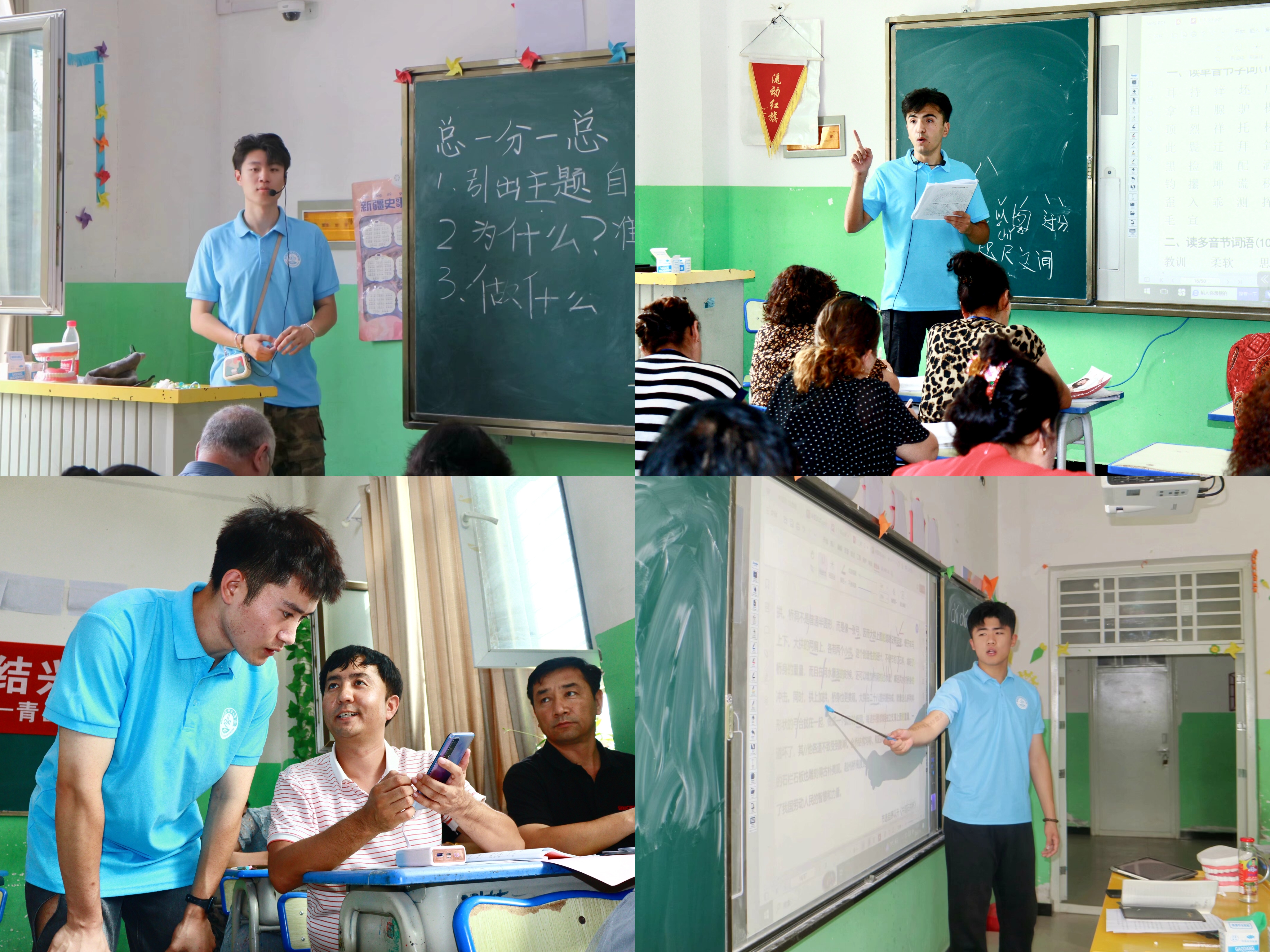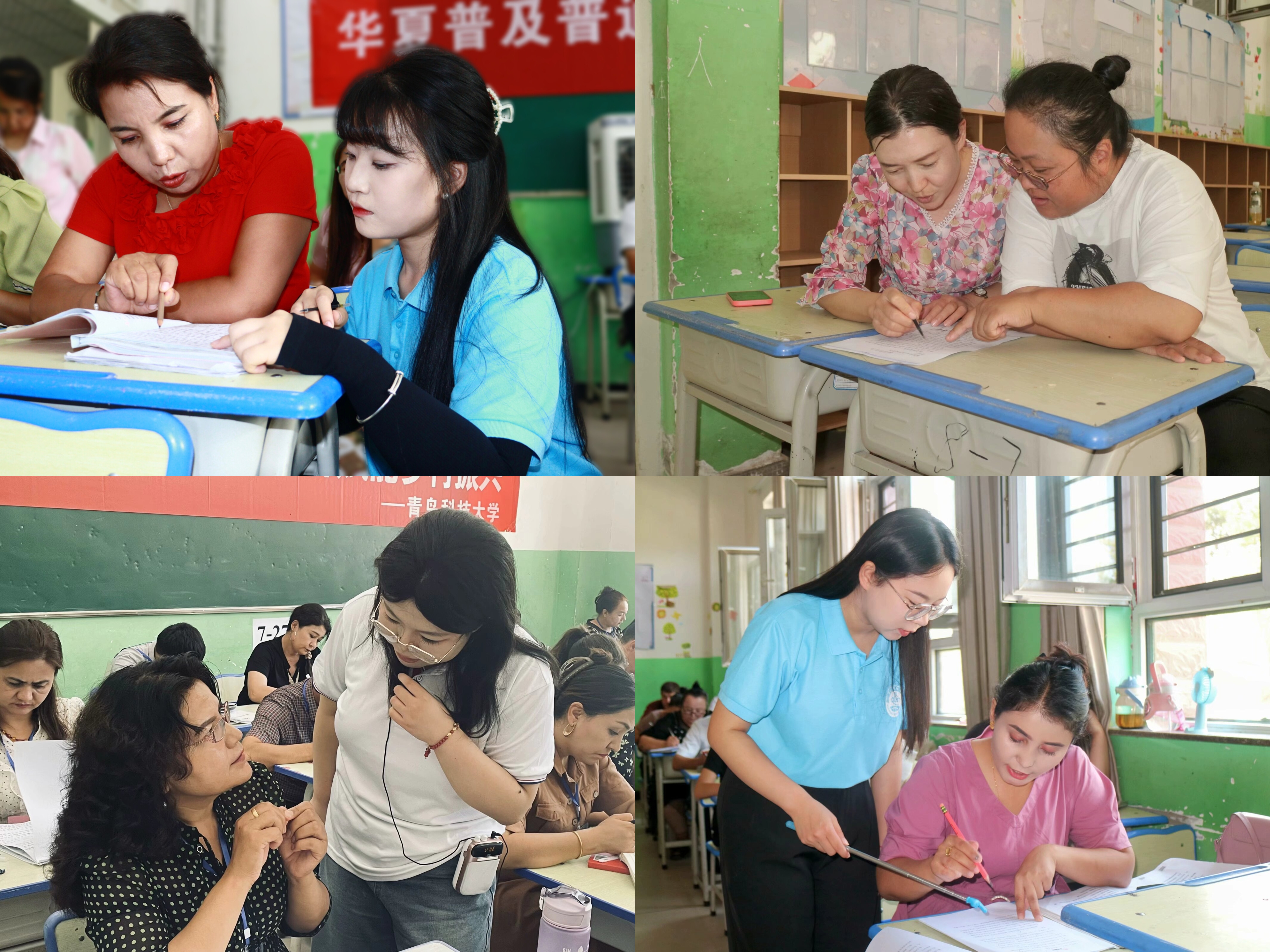 强化推普理论基础。MILE米乐集团“花开青科石榴红”推普助力乡村振兴支教团中有1名国家级普通话测试员,2名省级普通话测试员,12名助教,负责喀什疏勒县206名教师普通话培训工作。按照“抓住重点、盯紧关键,精准突破、巩固提升”的工作思路,对学员们国家通用语言文字的掌握情况进行再摸底、再分析,从“听、说、读、写”四个方面,做到摸清底,情况明。课上教学,课间总结,交流反馈,专家巡讲。根据前期的调研反馈情况,指导老师们针对学员们存在的声调区分,发音误区等多个方面在四个班级展开内容丰富的专业巡讲,进行专业指导,学员们收获颇丰。课后,实践团积极开展反思总结,交流经验,促进推普有力有效。
