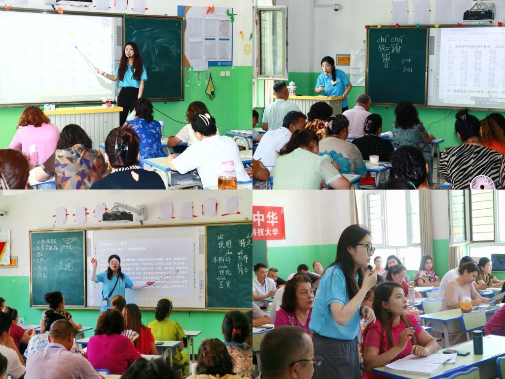 强化推普创新发展。实践团积极探索推普工作的新思路、新模式和新措施,带队教师付鹏程和杨洋老师指导实践团采取“112”教学模式,“按照学员实际情况和学习效率,将每天培训划分为四个模块,分别进行字词句、短文及命题说话训练。艺术学院副教授王琳老师结合多年课程思政教学成果融入普通话教学中,在《音声相和》讲座中,进一步激发学员的爱国之情。热孜亚老师创新实践团管理模式,实行“一班一策,精准化推普”策略,实行“三对多”教学模式,每个班级配备三名助教老师进行小班额教学,制定详细的“一员一策”教学方案,从声母、韵母、声调、常用字词入手为主,提升推普针对性、实效性。
