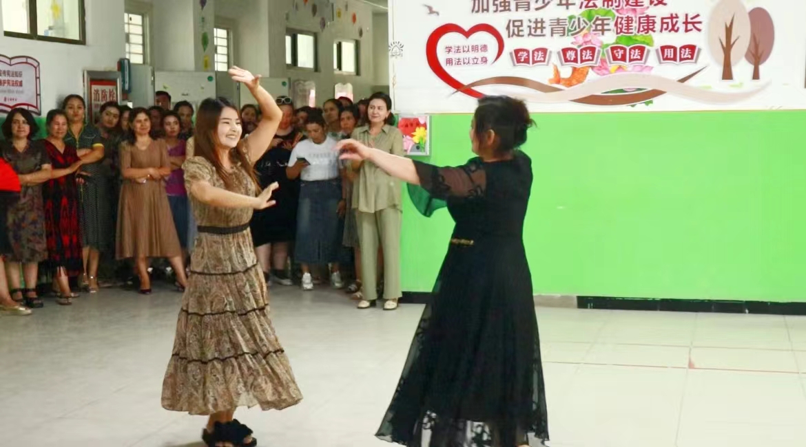 融合少数民族文化,搭建交流平台。实践团结合当地特色,设计各种课间互动活动,各民族师生齐跳民族舞,开展友谊篮球等,以丰富多彩的活动深化了与当地教师学员的友谊,在文字交流碰撞之余,用实际行动诠释“民族团结一家亲”精神,激发教师学员的学习动力与激情,促进交往交流交融,共同铸牢中华民族共同体意识,让普通话之花在喀什大地遍地开放,让青科大的“推普”之名,响彻天山南北。