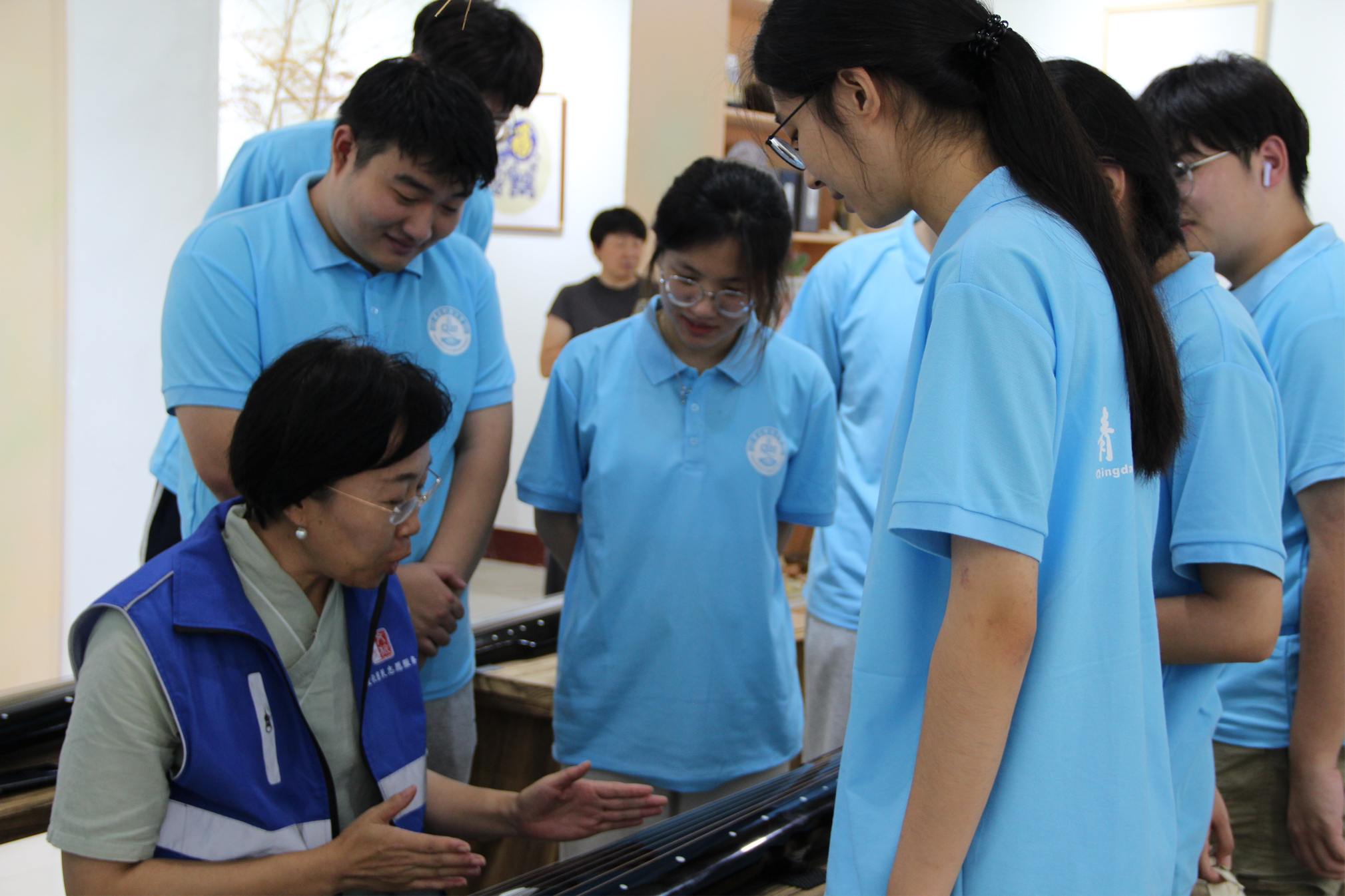 在平度市图书馆里,团队成员聆听古琴的悠扬旋律,学习如何弹奏古琴,与古人进行一场跨越时空的心灵交谈,让传统文化在我们的手里得到传承和发扬。韩晓慧老师从古琴的历史、构造、放置方法、弹奏技巧等方面进行深入浅出的讲解,让我们对古琴的琴头、琴尾、龙池、凤沼、雁足等有了更加全面的了解。韩老师亲自指导、带领我们学习了古琴中象征着天、地、人三籁的泛音、散音、按音,让我们亲身体验到古琴的魅力,同时学会弹奏简单的古琴乐曲,传承与弘扬了古琴的弹奏技艺。随着一曲悠扬的古琴声响起,韩老师的两名青年学生还为我们带来了一场古琴演奏会,她们以精湛的技艺演奏经典曲目,琴声悠扬,如泣如诉,仿佛将我们带入了千年前的文人雅集之中。