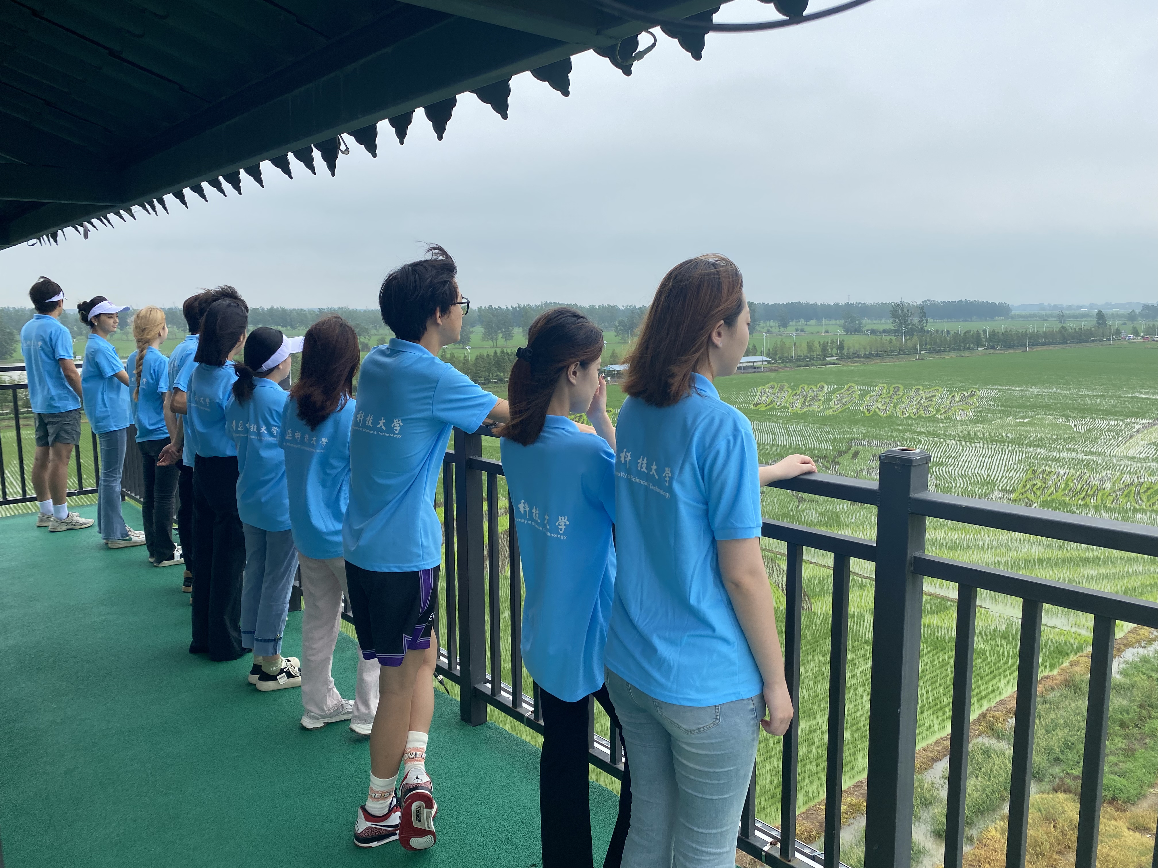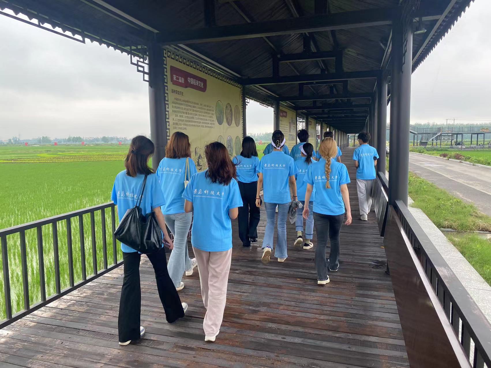 参观示范农园,体验乡村振兴。参观考察归昌乡姜湖贡米农业产业园。园区在种植稻田的基础上,在田内养殖鳝鱼,鱼虾等水产品,采用稻田与养殖相结合的方式,实现了产业创新。登上观景台,一幅幅以“实施四雁工程,助推乡村振兴”“鹿乳奉亲”“凤鸣归昌”“大丰收”等内容的彩色稻田画映入眼帘,团队成员深刻感受到了科技给农业带来的巨大变化,纷纷表示将来投身乡村振兴。