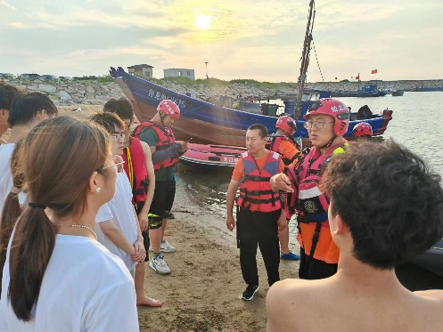 数据科学学院团委“青年担大任”基层振兴志愿服务团于近日前往烟台市龙口市东海旅游度假区沙滩,与当地知名的蛟龙救援队携手,共同开展了一场别开生面的防溺水安全知识宣传活动,以青春之名,守护大海的宁静与游客的安全。