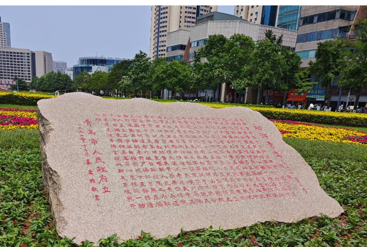 来到五四广场,成员们站在象征着“五月的风”的雕塑前,心中涌动着对先辈们的敬仰。这里不仅是青岛的地标性建筑,更是中国近代史上的一个重要节点,五四运动的发源地之一。实践团成员们在这里重温了五四精神,也看到有不少外来游客慕名而来与广场标志物合影留念,在帮助游客合影的同时也采访询问了他们对五四广场的第一印象以及历史背景的了解程度,通过对这些回答的收集和分析,成员们感受到了青年一代的责任与担当,更加坚定了为实现中华民族伟大复兴而努力奋斗的决心。