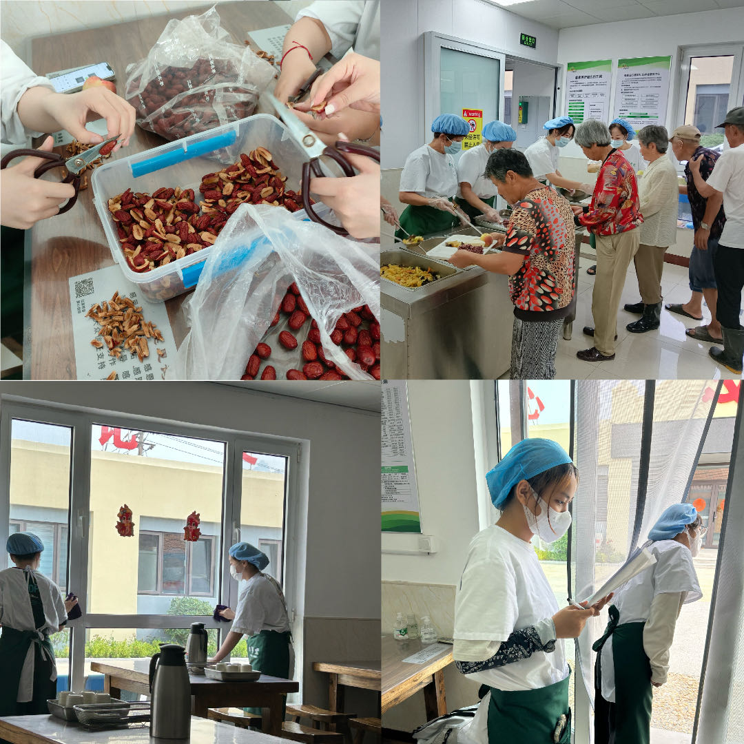 面对每日的打扫清洁、食材准备、对接老人等需精细化的工作,团队成员们通过志愿前辈姐姐们的演示和教导中,快速掌握并各自合理分配了工作,对老人腿脚不便等的各种特殊情况也使队员们在做实事时更加了解思考和体会对于特殊群体应考虑的更细致更实际。面对食材的准备更是要考虑到老人们的牙口和身体情况,例如准备小米红枣粥时,应将红枣的核细心的择好并剪成小块,进门的台阶应小心搀扶。每个老人的不同实际情况问题,使大家所学所想动用不同办法解决。对于特殊群体的关爱从不是单薄的,而是更多的关爱和考虑,暖人心,更现价值。在公益餐厅服务的魅力不止止步与此,在实现自我价值的同时传递社会的温暖,在实践中更思考身处于如此温暖的阳光下能做的更多实质应用。团队队员们在锻炼青年学生实践能力的同学,更思考前进目标。