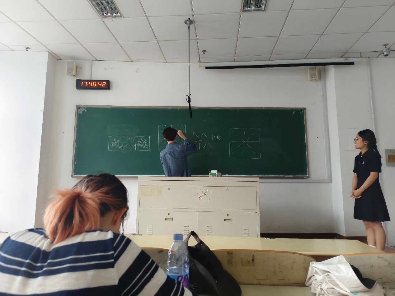 在书法体验环节中,队员们更是沉浸其中,纷纷表示:“书法社的学姐用‘之’和‘水’这两个简单的汉字带我们推开了书法结构的大门,让我们领略到了结构的风采。”一位队员兴奋地展示着自己的作品,脸上洋溢着满足的笑容。此外,实践队充分利用社交媒体平台,将书法教学的精彩瞬间和队员们的作品分享给更多人。“通过这次活动,我不仅学会了书法,更感受到了中华文化的魅力。”一位队员在个人社交媒体上写道,“希望更多人能了解并爱上这门艺术。”