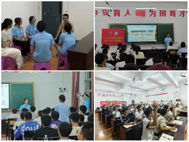 在咸丰一中,实践队首先采访了青科大2013届校友、咸丰一中高三3班班主任徐果老师,与老师交流了普通话在教学中的使用情况,随后实践队开展了“推普助力科学引领”讲堂活动。通过科普讲座、科学实验演示、有奖知识竞答等方式,向青少年们普及了科学知识,并强调了普通话在科学传播中的重要性。活动激发了青少年们对知识的学习热情,也提升了他们运用普通话进行学术交流的能力,为培养未来科技人才奠定了坚实基础。