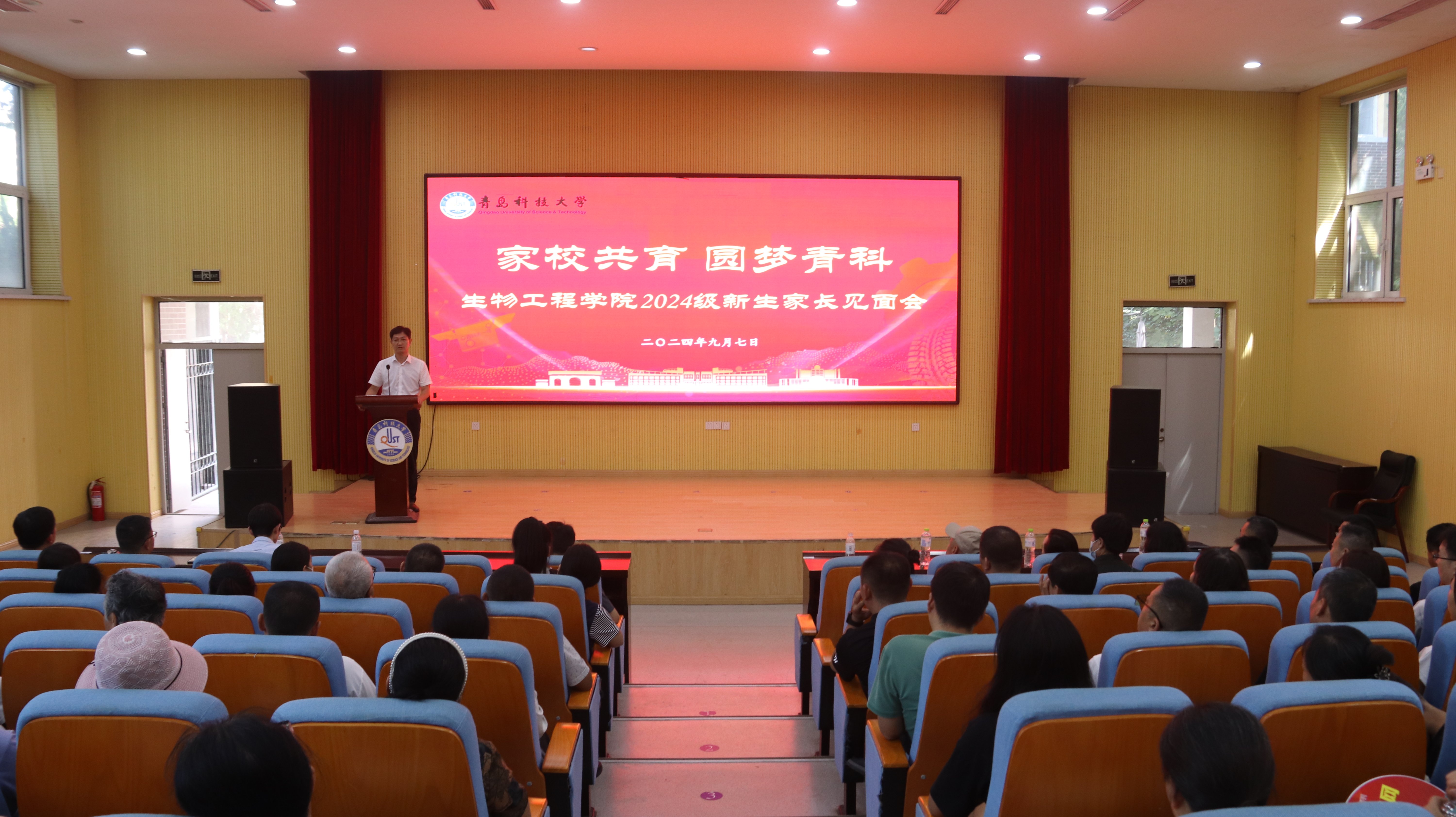 为促进家校沟通,增进家长与学校之间的了解与信任,做好家庭教育与学校教育相互衔接、相互配合工作,助力青年学生全面发展,9月7日,生物工程学院团委于尚舜报告厅举办“家校共育 圆梦青科”2024级新生家长见面会。生物工程学院院长顾玉超,党委书记周宪锋,党委副书记兼副院长刘浩,副院长孟祥民以及新生家长代表出席本次会议,会议由生物工程学院团委书记兼学工办主任秦洪庆主持。