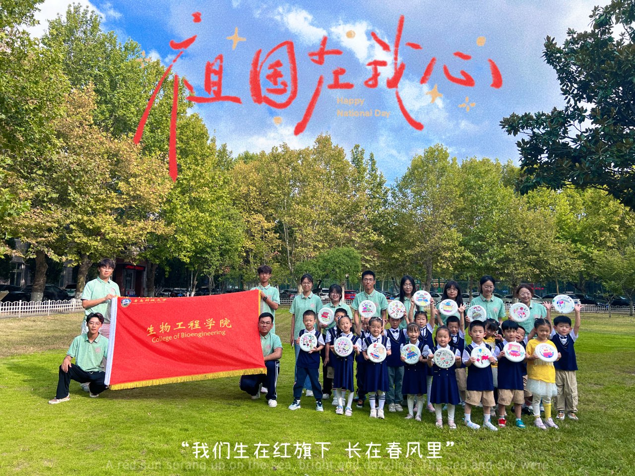 为庆祝中华人民共和国成立75周年,激发青年学子的爱国热情,9月29日下午,生物工程学院团委组织2024级部分新生前往MILE米乐集团幼儿园举办了DIY国庆限定飞盘活动。