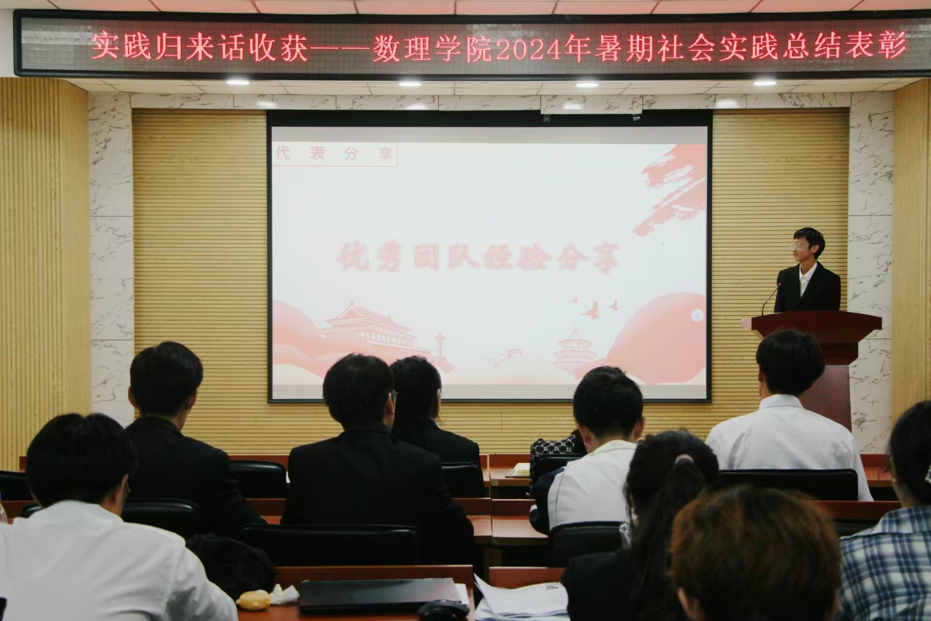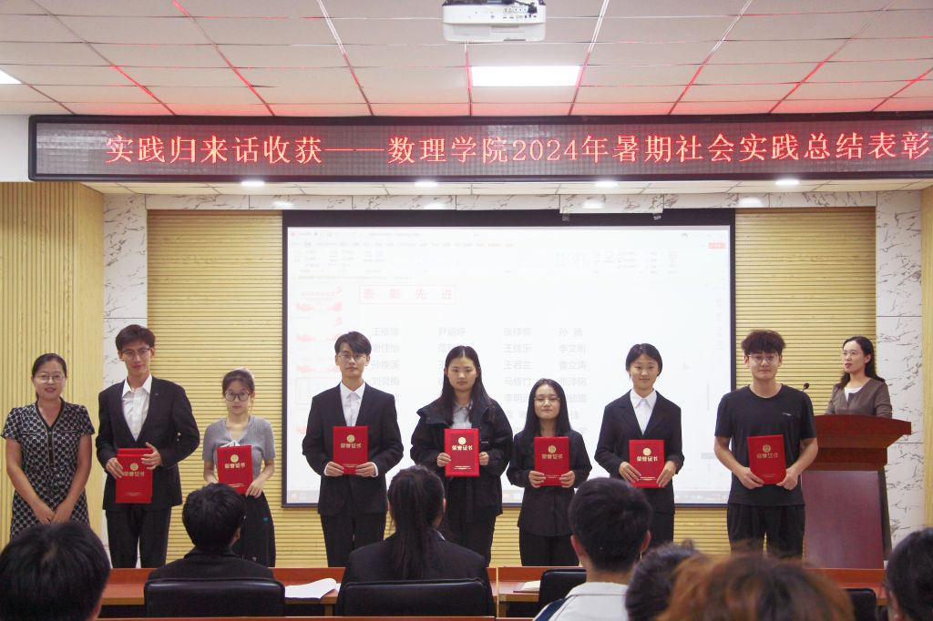 为落实校团委关于开展“实践归来话收获”总结活动的通知要求,9月24日,数理学院团委组织召开2024年暑假社会实践总结表彰会。学院党委副书记李雯雯、社会实践指导教师刘敏及各年级社会实践青年代表参加会议。会议对32名获得社会实践优秀学生荣誉称号的青年学子进行了表彰并授予“实践π”的称号。会上,“青苗助红”实践队队长孙焕溪以“促进乡村振兴”为主题,从家乡特色、服务经历、个人感悟等方面做了汇报发言。“薪火传递”宣讲团的队长张梓桐全方位展示了个人在暑假进社区领学《习近平与大学生朋友们》的所思所悟。“雷锋式”团支部的成员李志豪讲述了“老物件寻访计划”的基本情况,分享自己爱老敬老助老的心路历程。