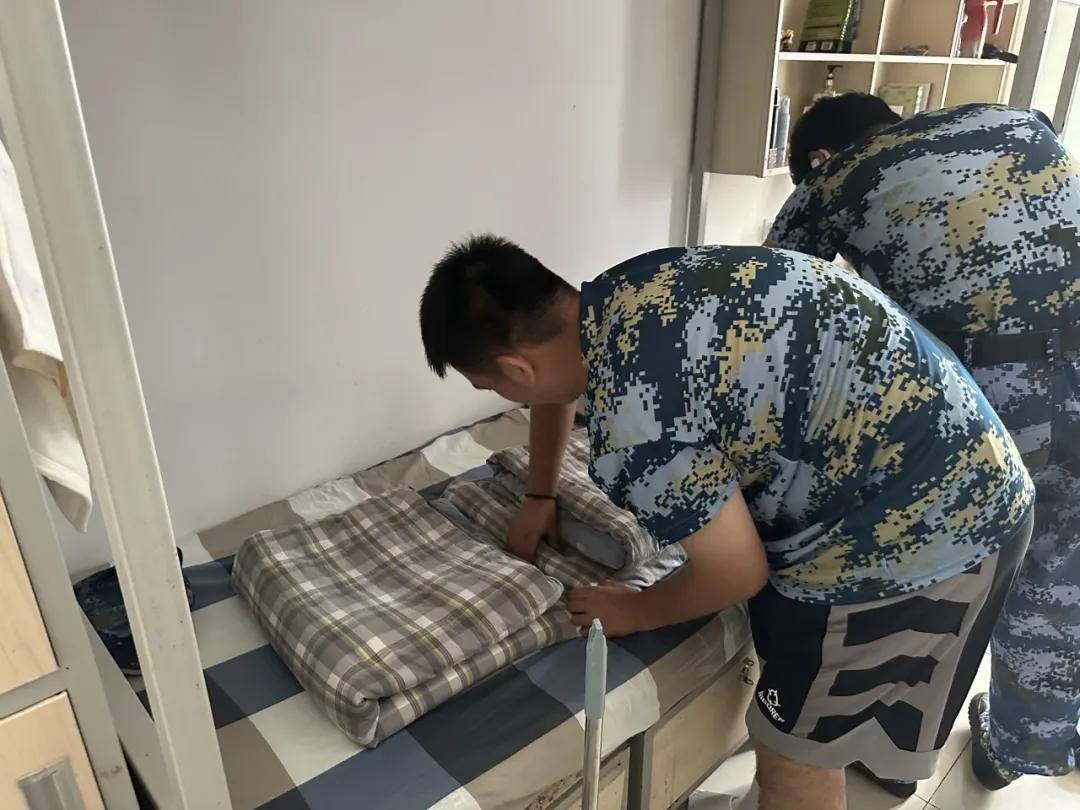 为赋能连队军事管理与建设,强化纪律意识,新生的内务整理水平,9月9日晚,自动化学院团委召集退役士兵青年学生成立“护航”服务大队,深入青年学生宿舍指导内务整理。