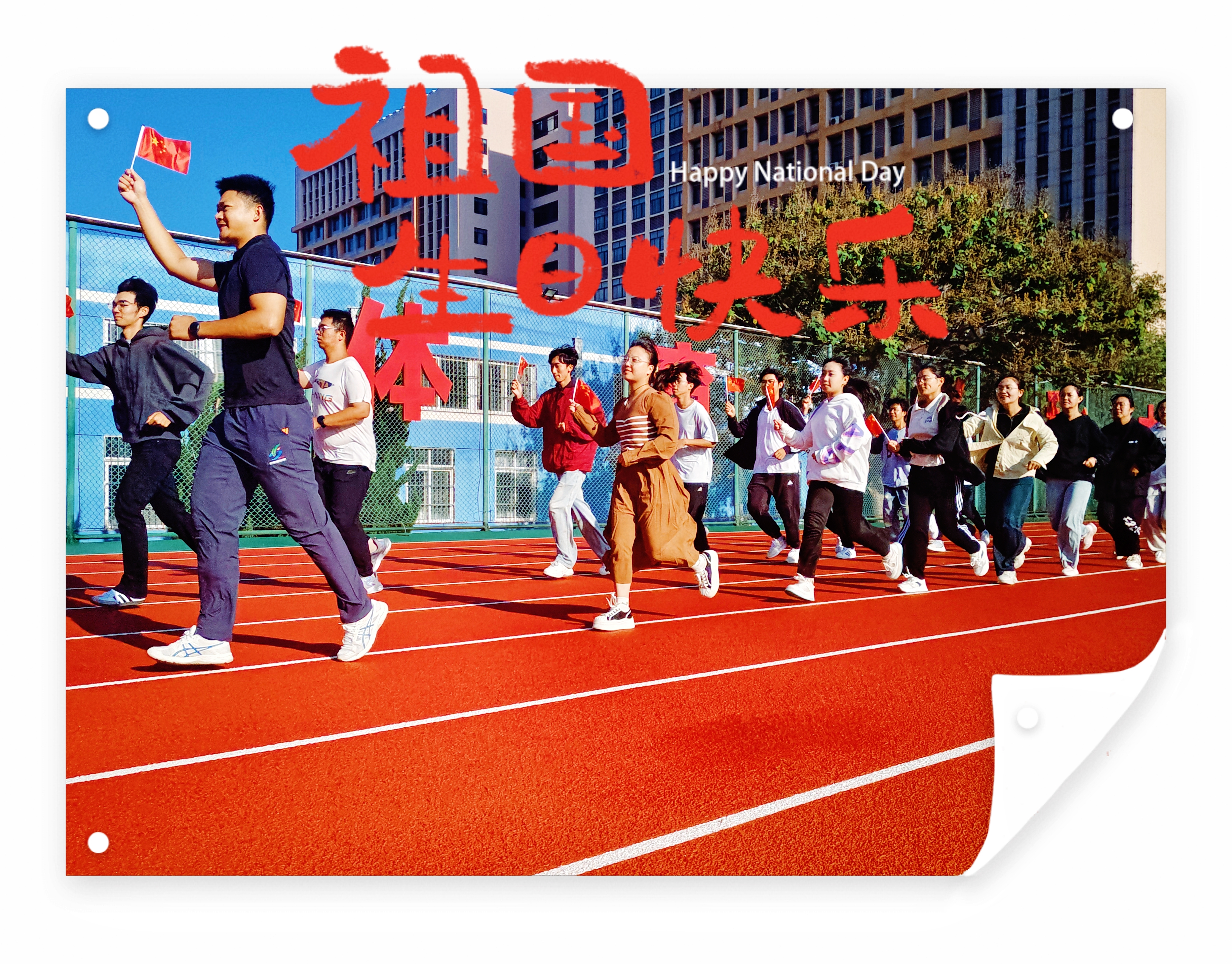随后国庆晨跑活动拉开序幕,在奔跑的过程中,学子们高呼“祝福祖国,繁荣昌盛”的口号,声音在操场上空回荡,展现了他们作为化工学子的骄傲与自豪。他们不仅是在用脚步丈量着操场,更是在用心灵感受着祖国的伟大与美好。