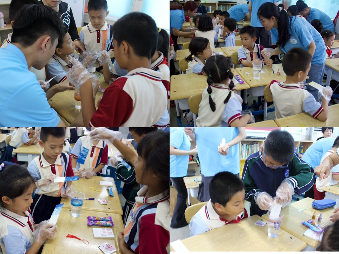 王佳雯带来了漆染的讲解,实践队成员贾婕、陈炳翰运用漆染原理,带领同学们制作了漂漆书签。大家纷纷在书签上写下对祖国的祝福,表达对祖国的热爱之情。