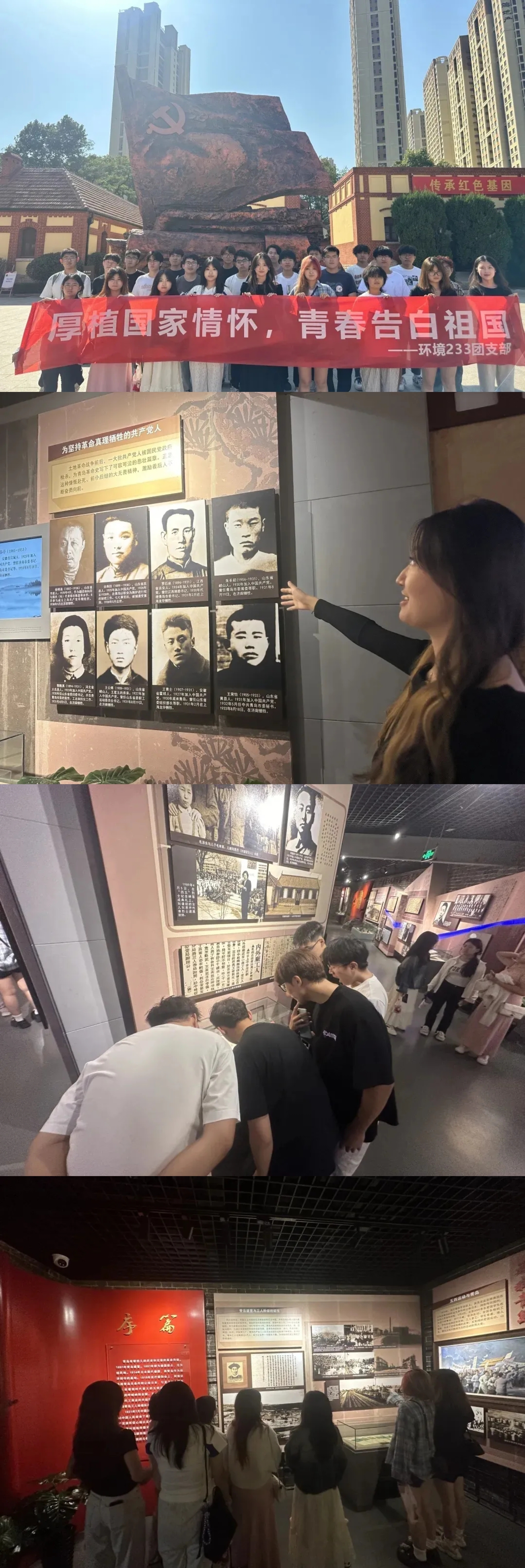9月28日,环境233团支部开展“厚植家国情怀,青春告白祖国”主题团日活动,团支部的同学们前往中共青岛党史纪念馆参观学习,在纪念馆中,同学们认真观看珍贵的党史资料,聆听党史故事,在一幅幅图片、一件件实物前驻足思考,感受党的光辉发展历程,进一步明确青年的责任与担当,不断激发强国有我的青春激情,用青春的智慧和汗水在中国式现代化建设中挺膺担当。