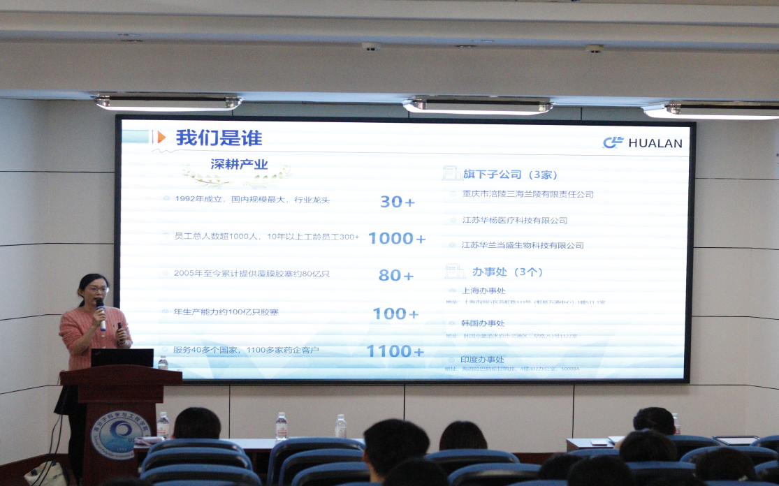宣讲会上,江苏华兰药用新材料股份有限公司人力资源经理胡静向在场的同学们介绍了公司的基本情况和发展理念,详细介绍了公司的招聘需求和岗位设置,针对不同专业和层次的人才,公司提供了专业的培训途径,同时,还介绍了企业文化,员工待遇等信息,让同学们更加了解公司。