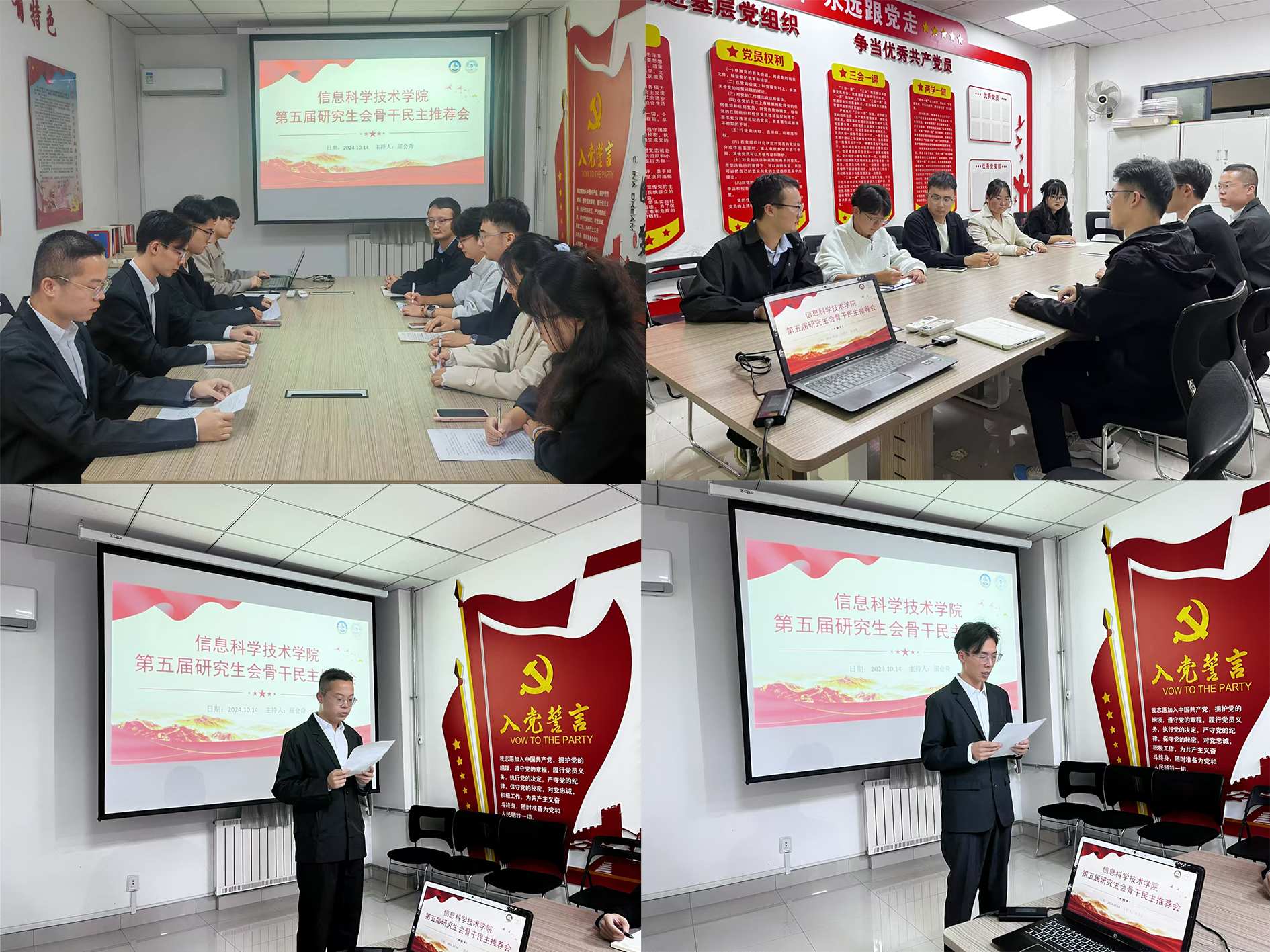 10月14日,信息学院第五届研究生会骨干民主推荐会在学院党员活动室成功举行,会议旨在总结过去一年的研究生会工作,并选举出新一届研究生会核心成员。参加会议的有研究生会指导老师屈会奇、第四届研究生会主席团成员和竞选新一届研究生会骨干的候选人,此次会议由屈会奇主持。